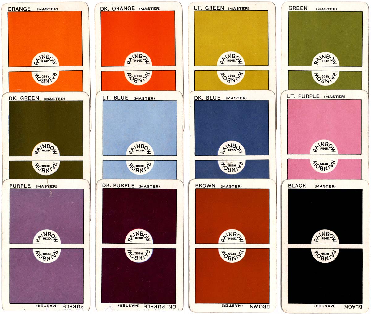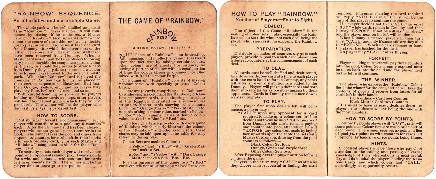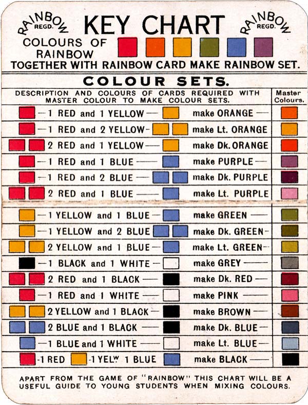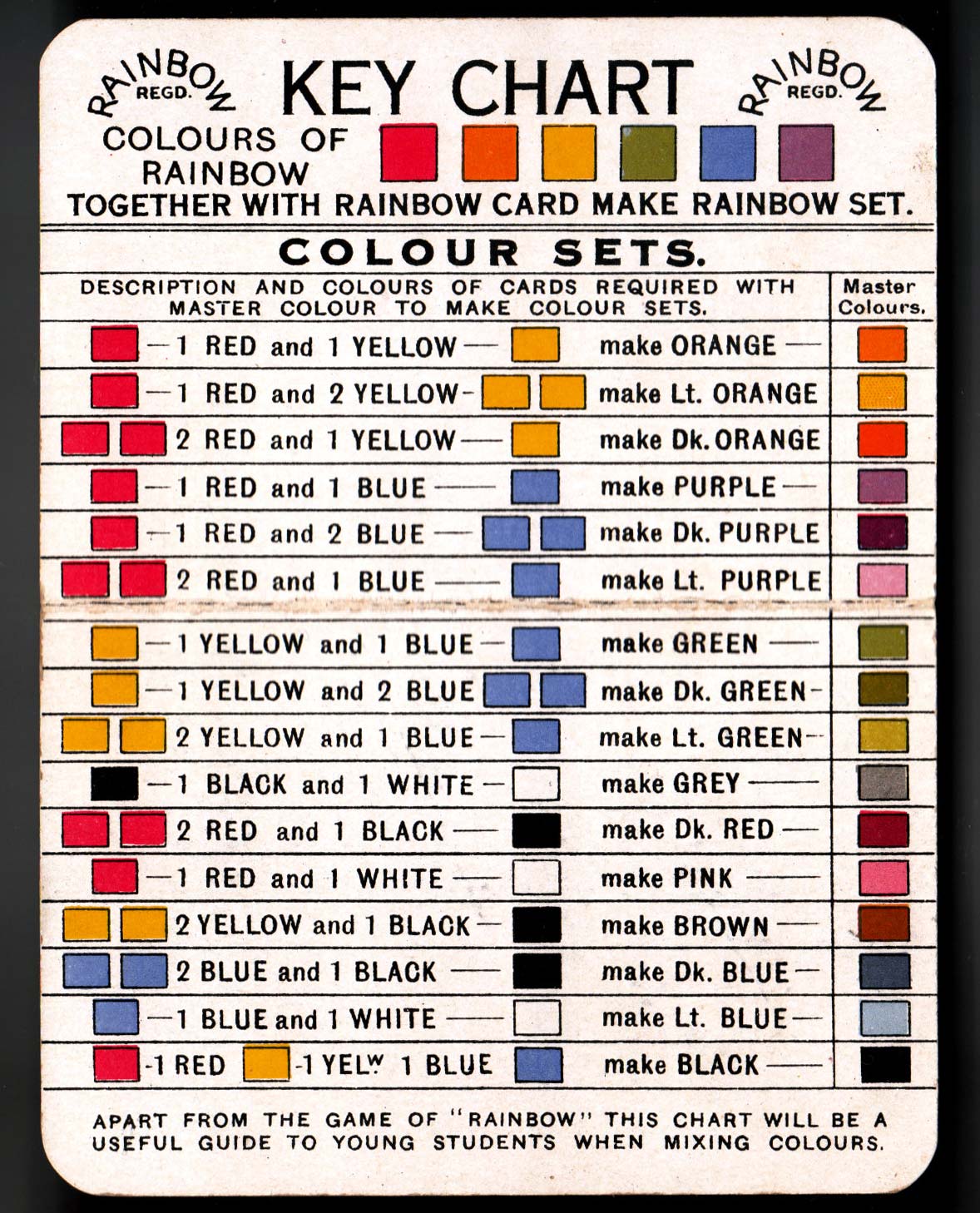 Rainbow card game and colour mixing guide printed by Goodall & Sons for Robert Johnson, Leicester, c.1920, designed to instruct players in the blending of colours.