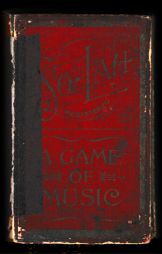 Above: So-Lah – A Game of Music domino cards made by Goodall & Son Ltd, London, UK, 1904. 28 cards in maroon and gold telescopic box. Size: 45 x 77 mm.