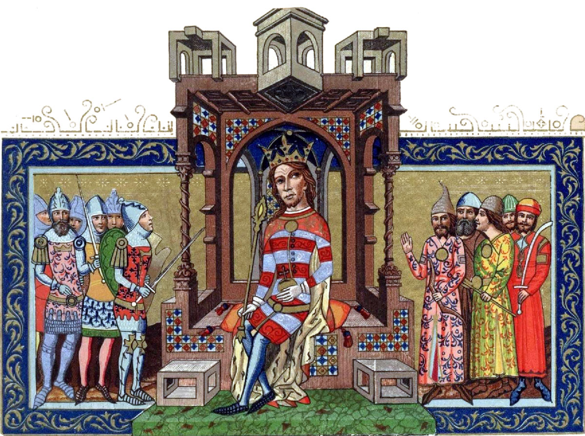 Above: detail from the first page of the Képes Krónika kódexe, c.1360.