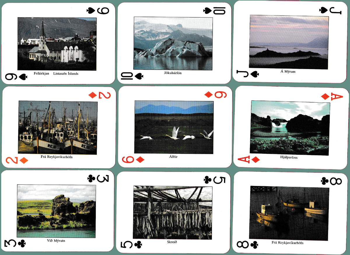 Above: Icelandic picture playing cards (Islensku landslagsspilin) with photography by Gudmundur Ingólfsson.