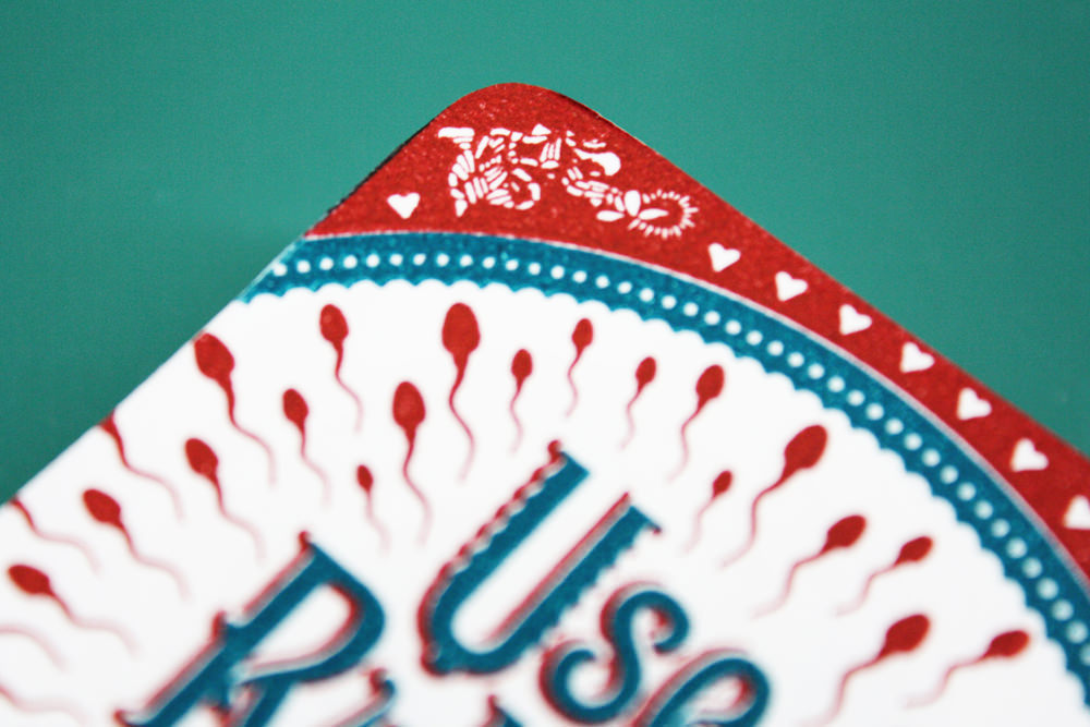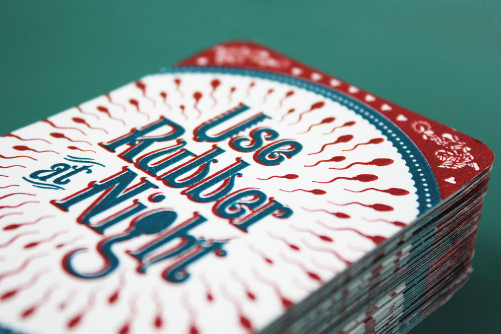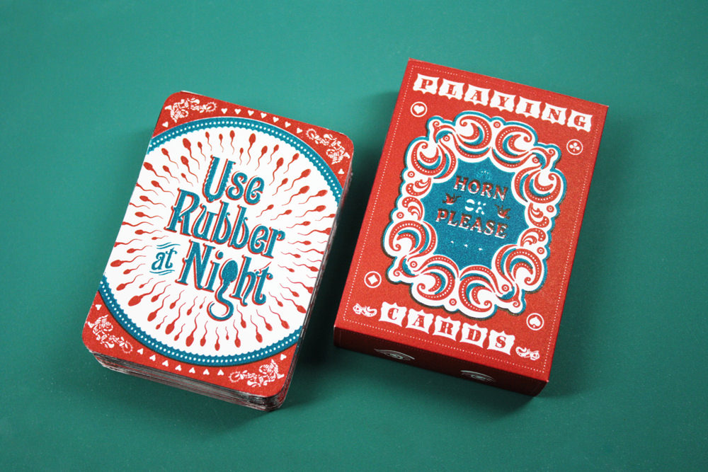 The playing card design has been inspired from a very common phrase ‘Use dipper at night’ seen quite often on the back of Indian trucks. The message has been altered to suit the purpose and now reads ‘Use rubber at night’ which serves as an important reminder to the user of using condoms while having sex.