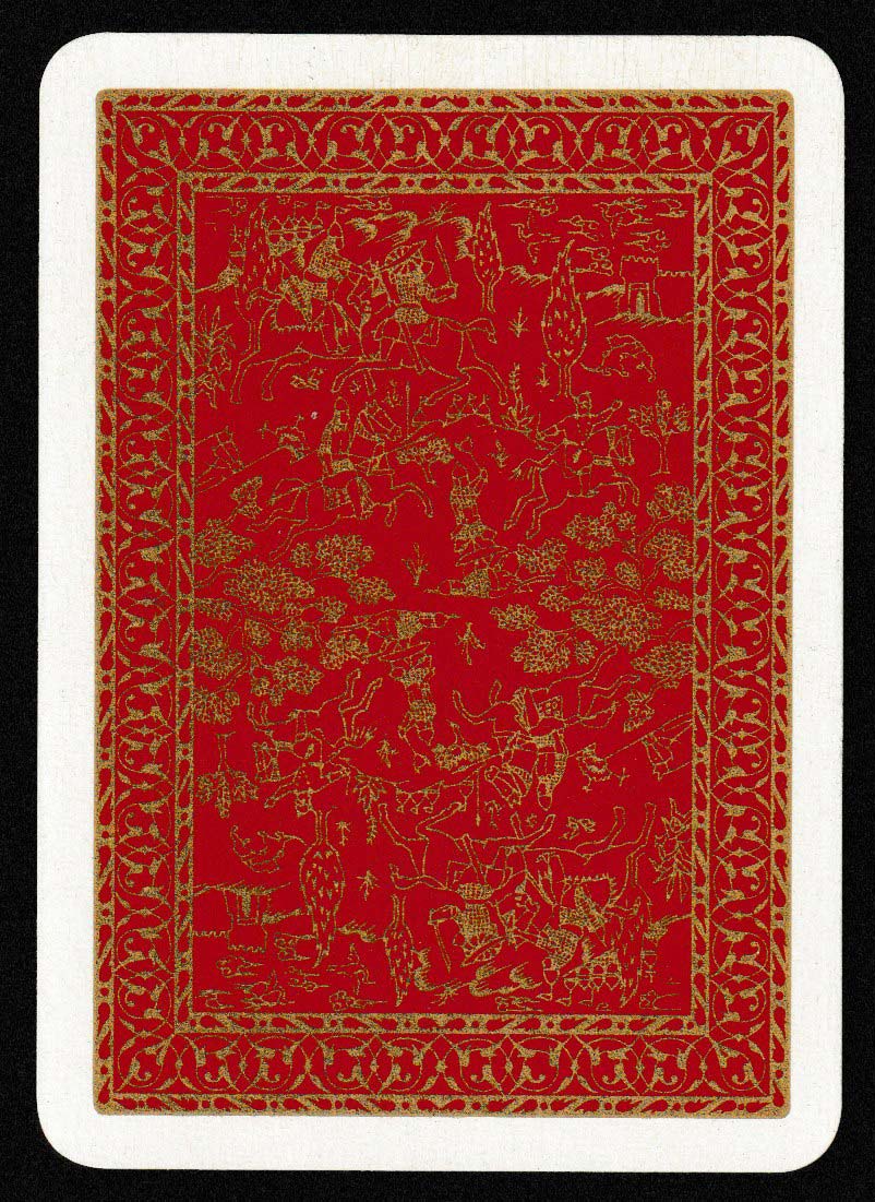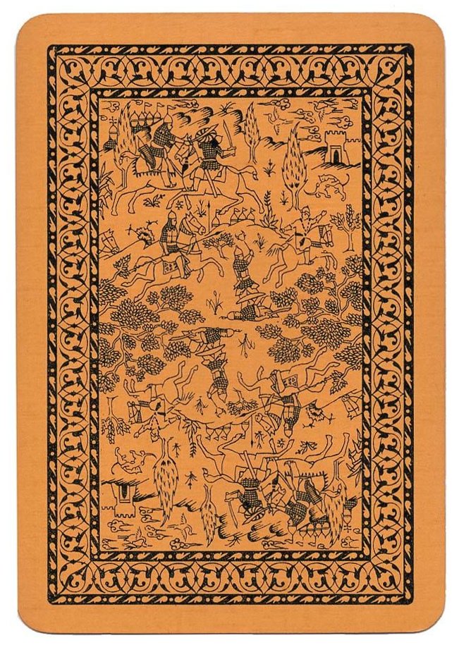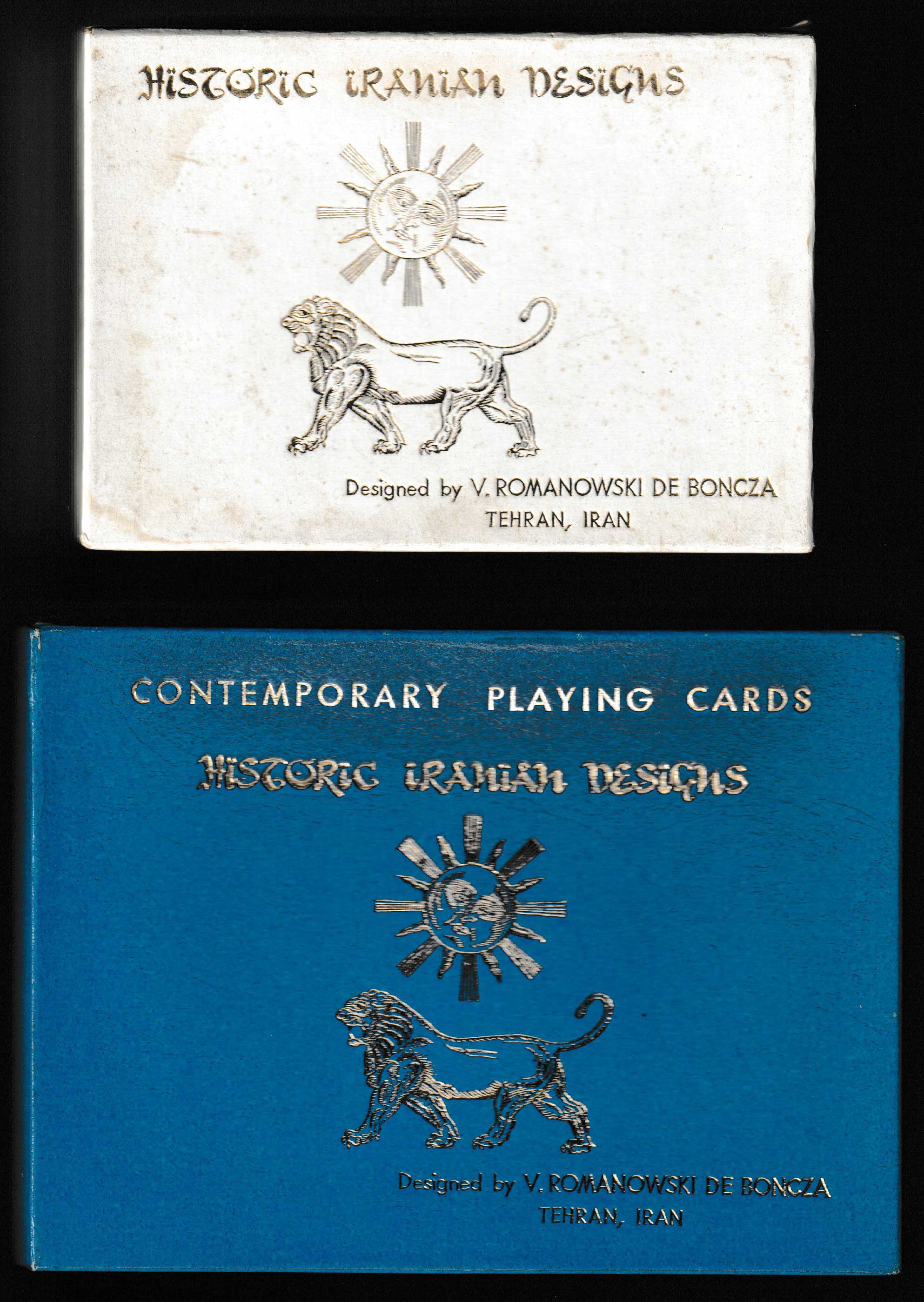Above: 'Iranian' playing cards designed by V. Romanowski de Boncza and first printed by De la Rue in c.1937. The cards incorporate Iranian motifs and there appear to have been more than one back design as well as a patience sized version; the cards were also re-printed by Fournier in c.1962 and again at a later date with some modifications. Images courtesy Barney Townshend and Mehdi Soozande.
