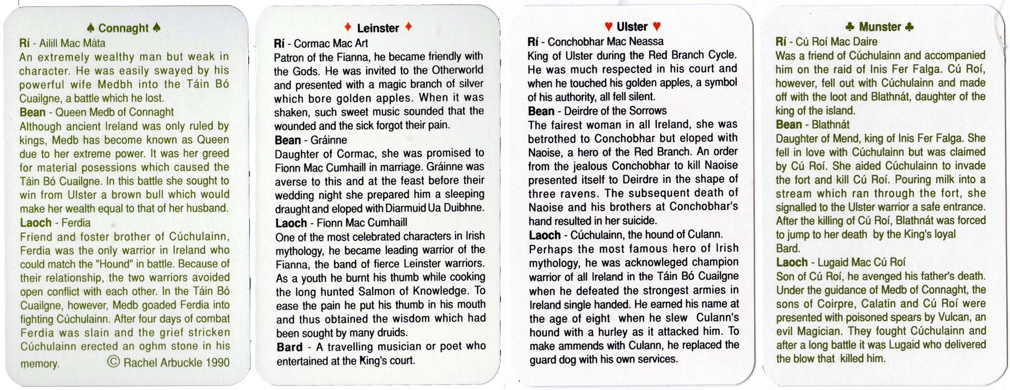 Irish Legendary deck featuring figures in the Legends of Ireland, designed by Rachel Arbuckle, 1990.