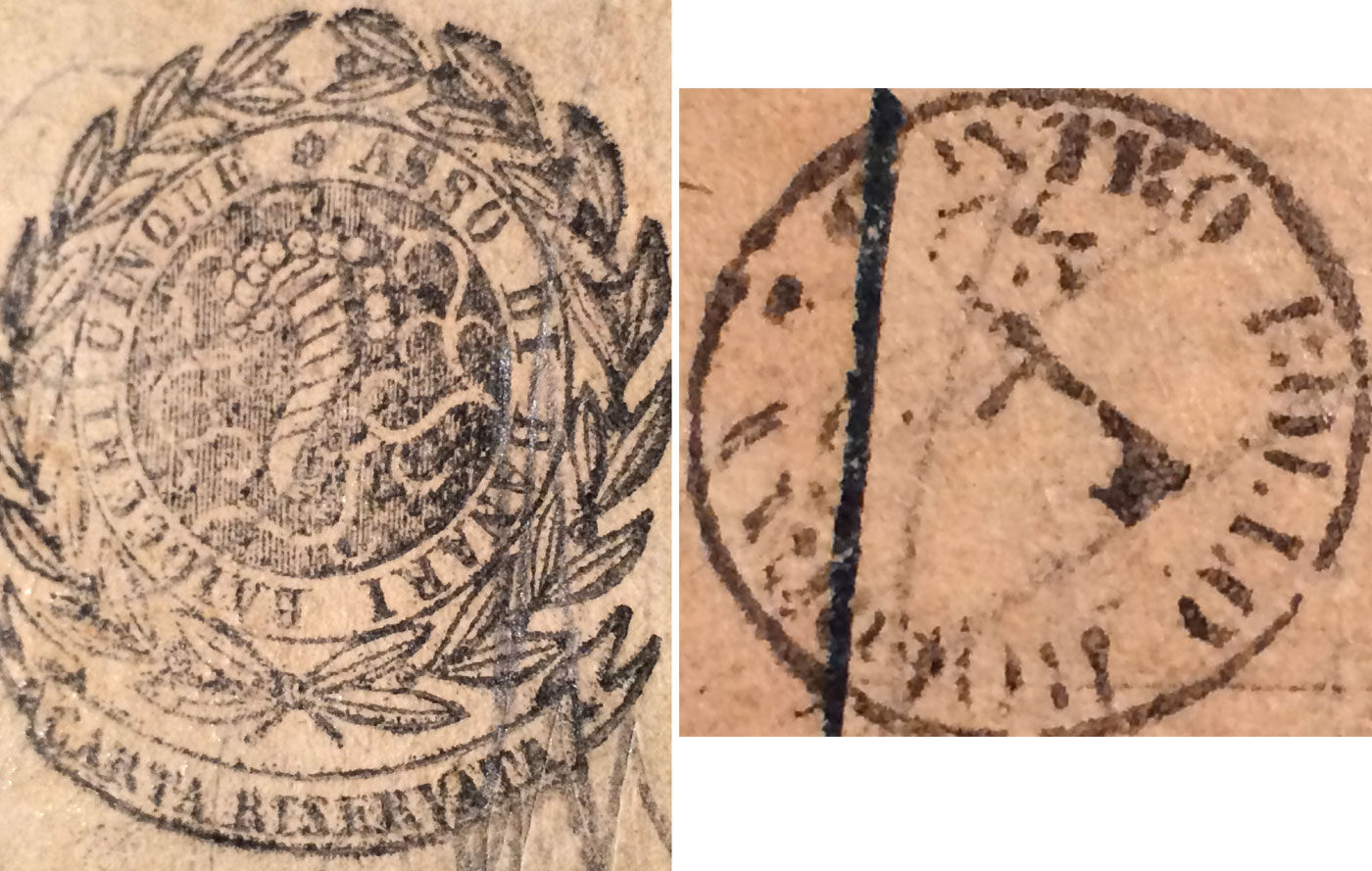 Above: incomplete deck by Carlo Zanardi with similar stamps on the ace of coins, c.1850. The colour palette is also similar. Courtesy Alberto Pérez González.