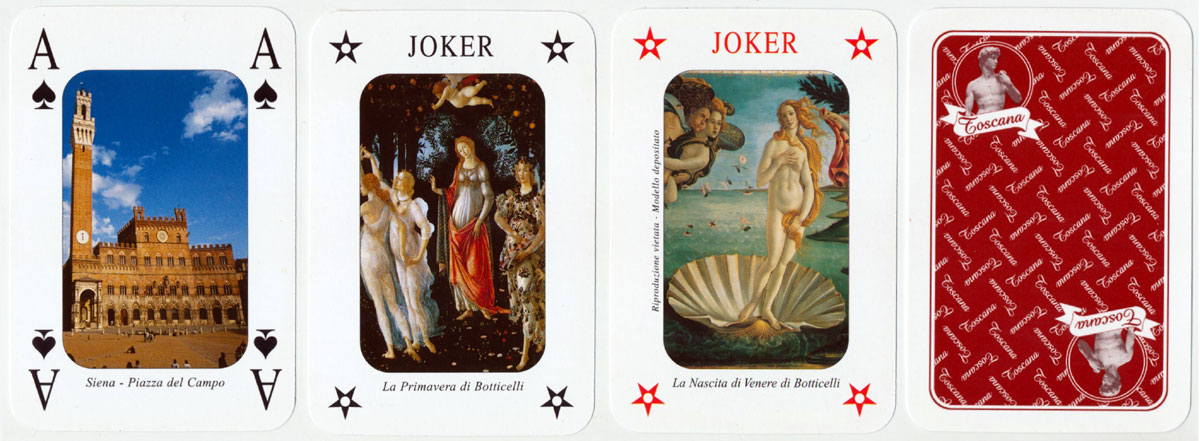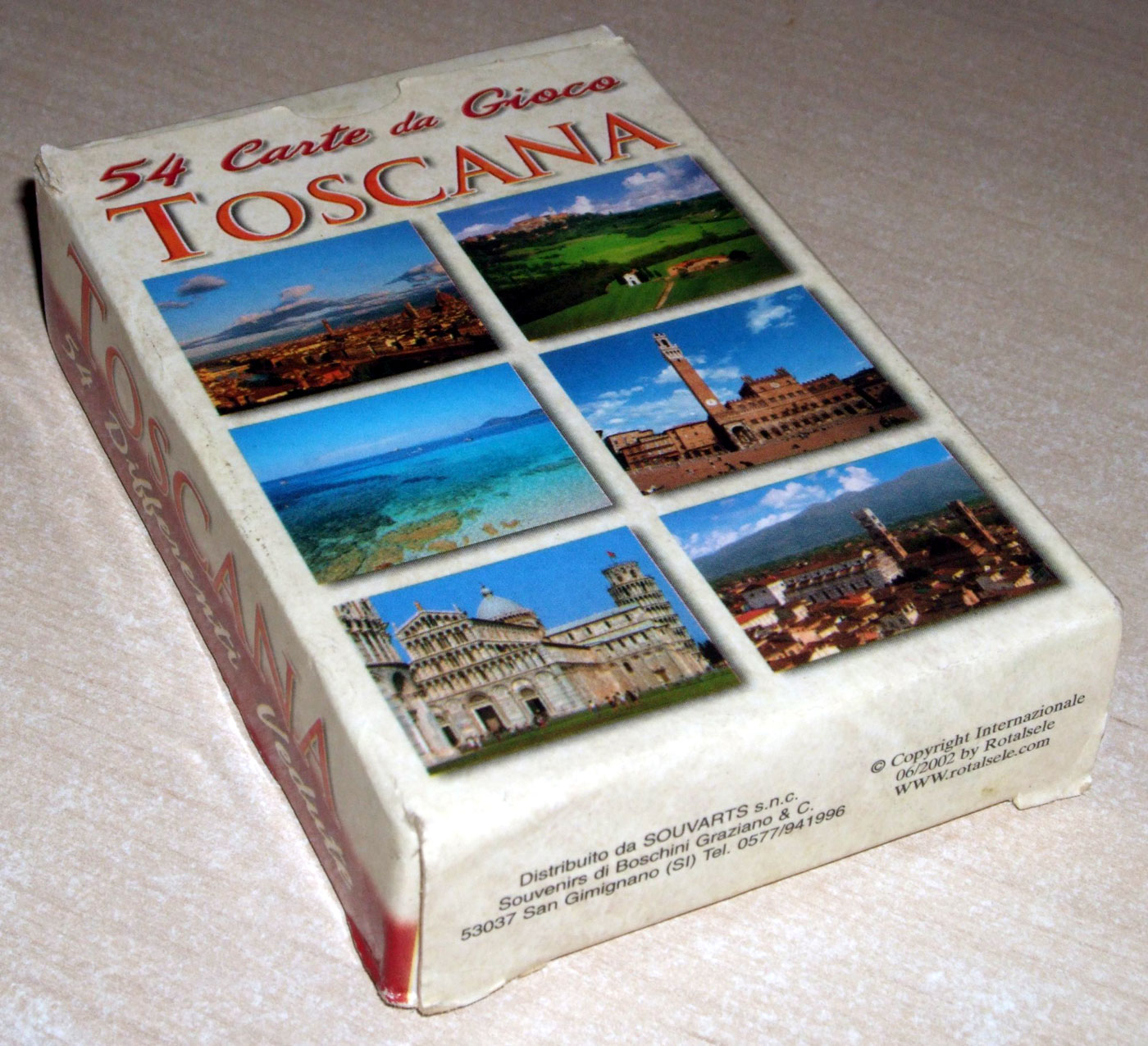 Above: Carte da Gioco Toscana souvenir deck published by Rotalsele, 2002. 54 cards in box.