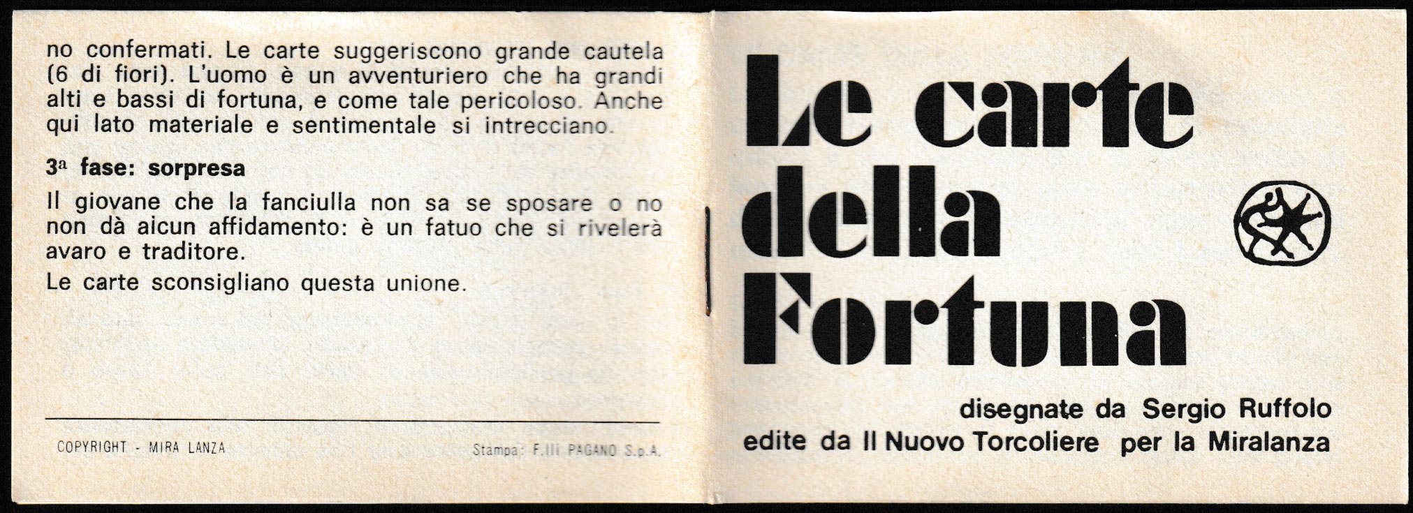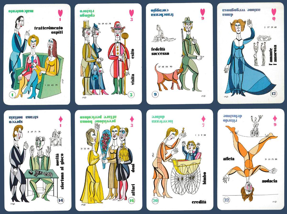 Modern Italian fortune-telling pack from 1975, with designs by Sergio Ruffolo.