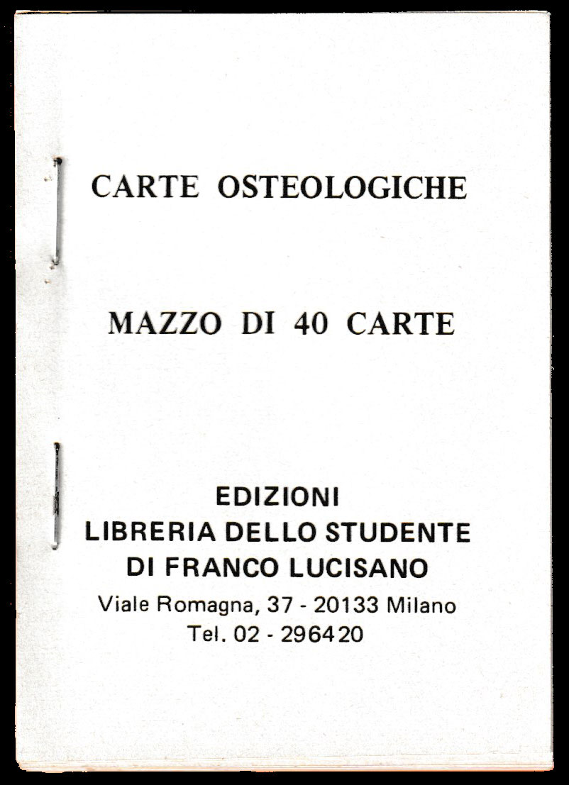 Above: Carte Osteologiche published by Edizioni Libreria dello Studente di Franco Lucisano, Milan, Italy, 1978. 40 cards + extensive explanatory booklet in Italian, in clear plastic box. Size: 64 x 90 mm.
