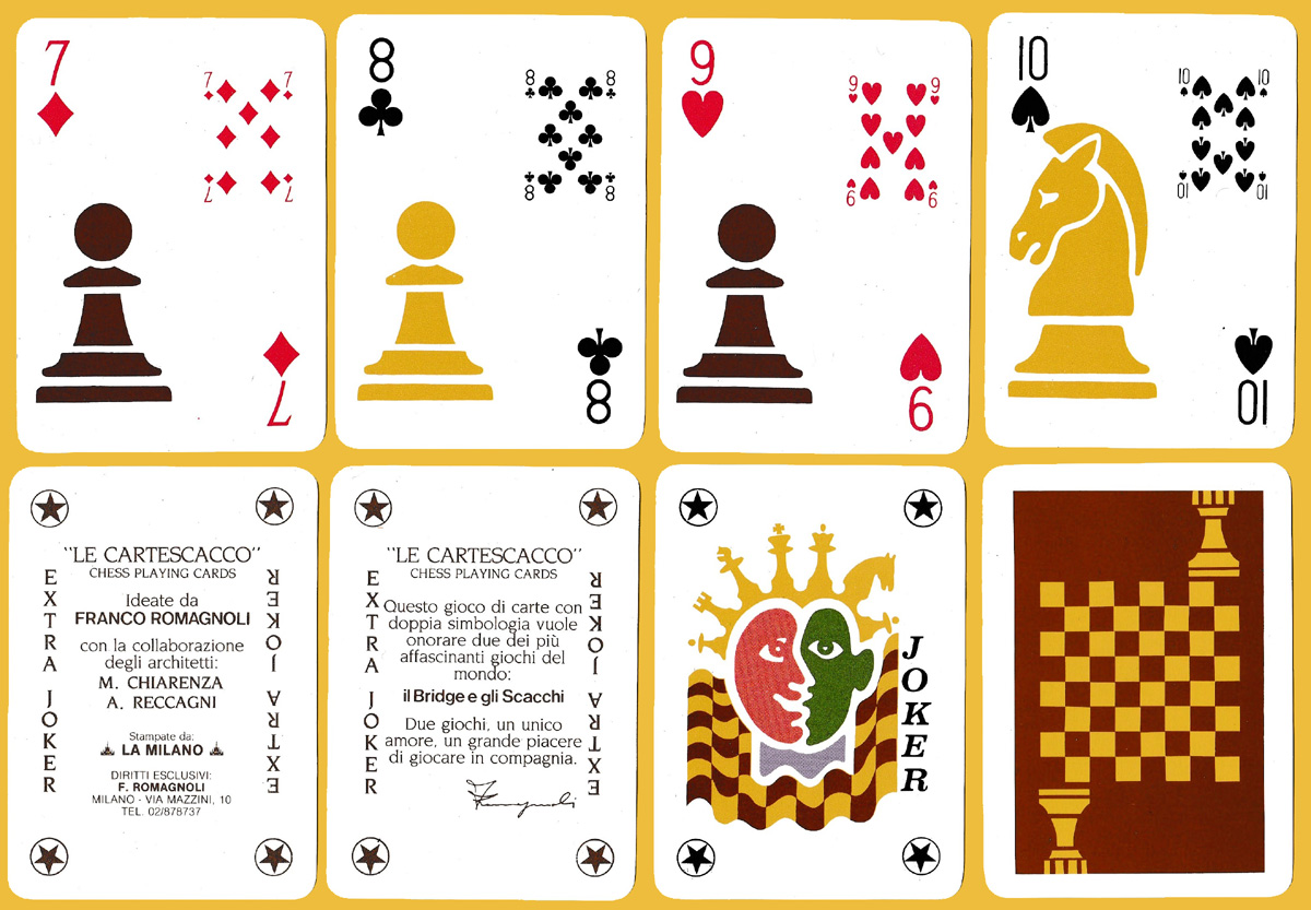 Playing cards designed by F. Romagnoli bringing together Chess and Bridge, Italy, c. 1981.