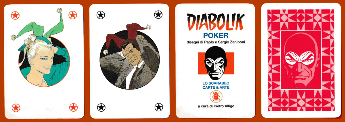Above: Diabolik Poker published by Lo Scarabeo, Turin, Italy, c1996. Made in Italy. 52 cards + 2 Jokers + 1 title card in tuck box. Size: 61 x 88 mm.