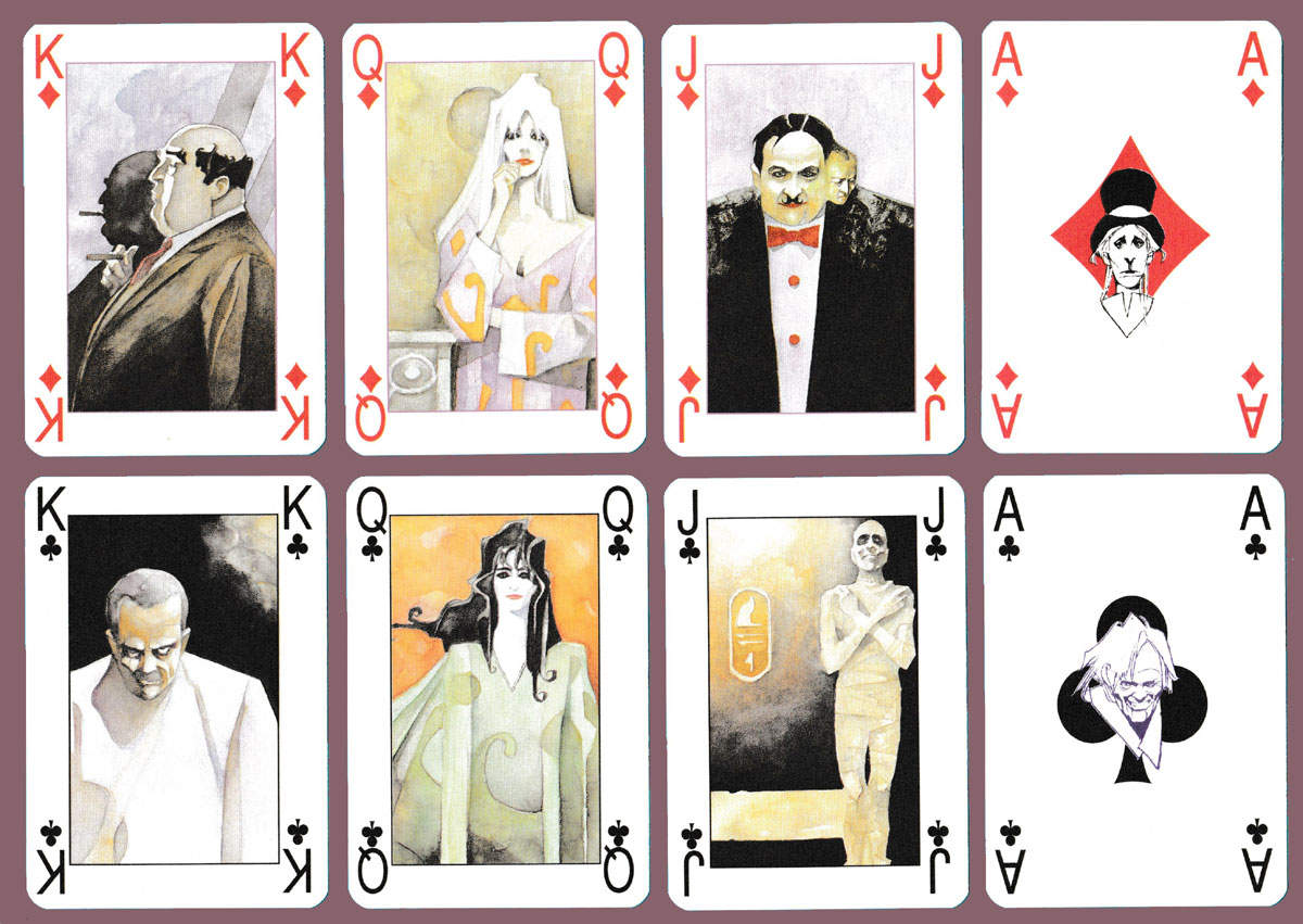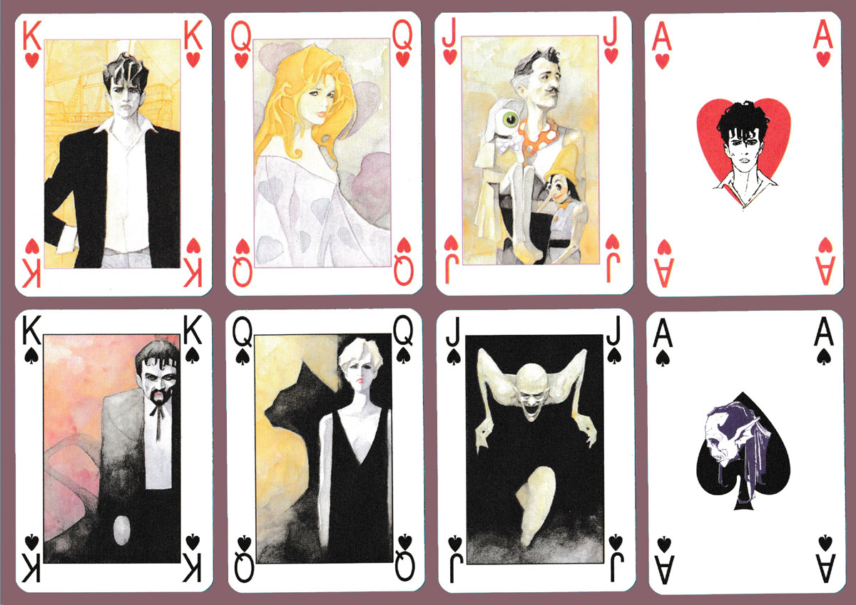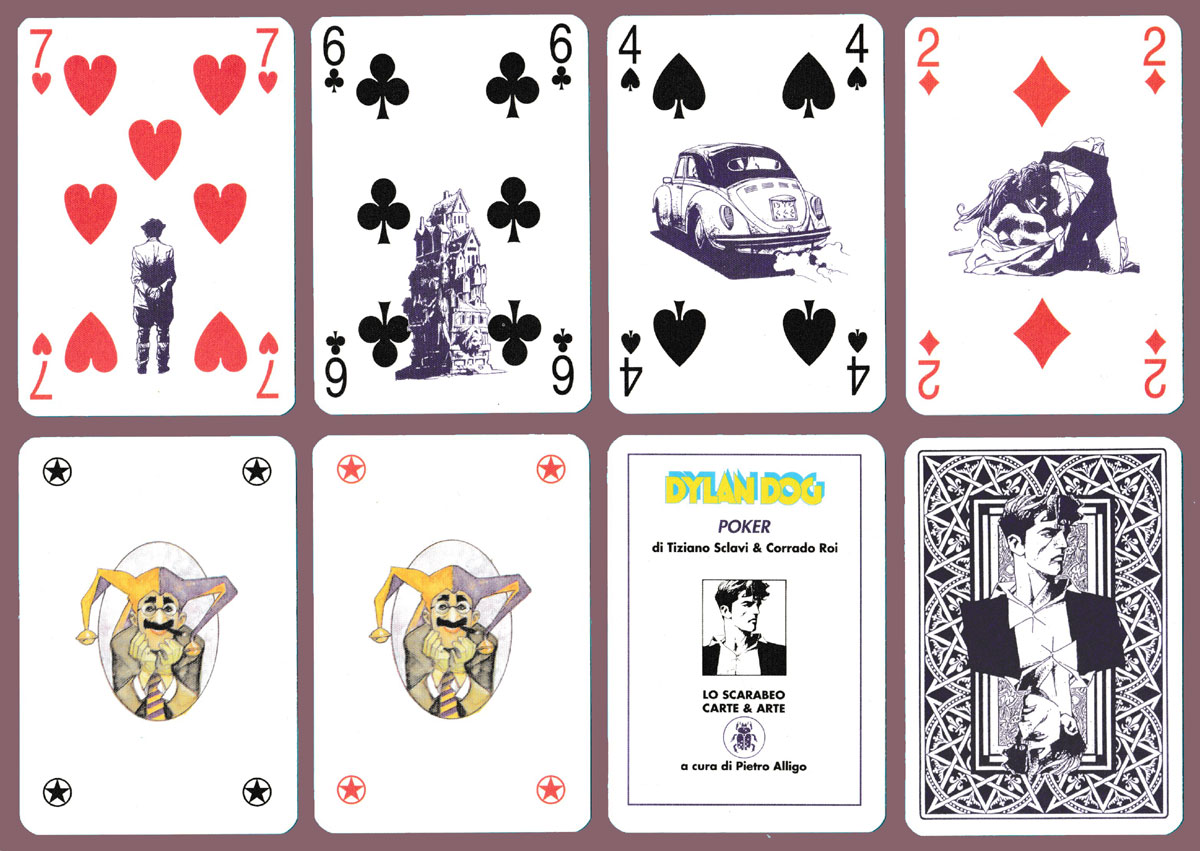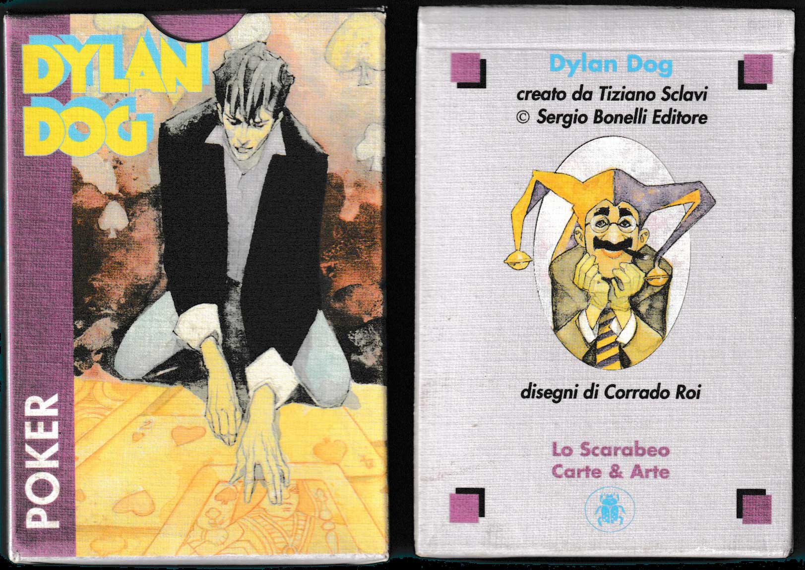 Above: Dylan Dog playing cards published by Lo Scarabeo, Turin, Italy, c1995. 52 cards + 2 Jokers + 1 title card + leaflet in Italian, in tuck box. Size: 62 x 88 mm. © Sergio Bonelli Editore. Printer unknown.