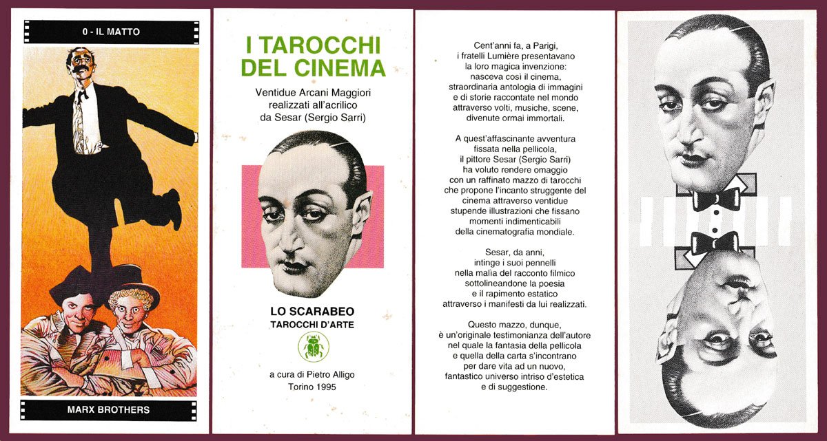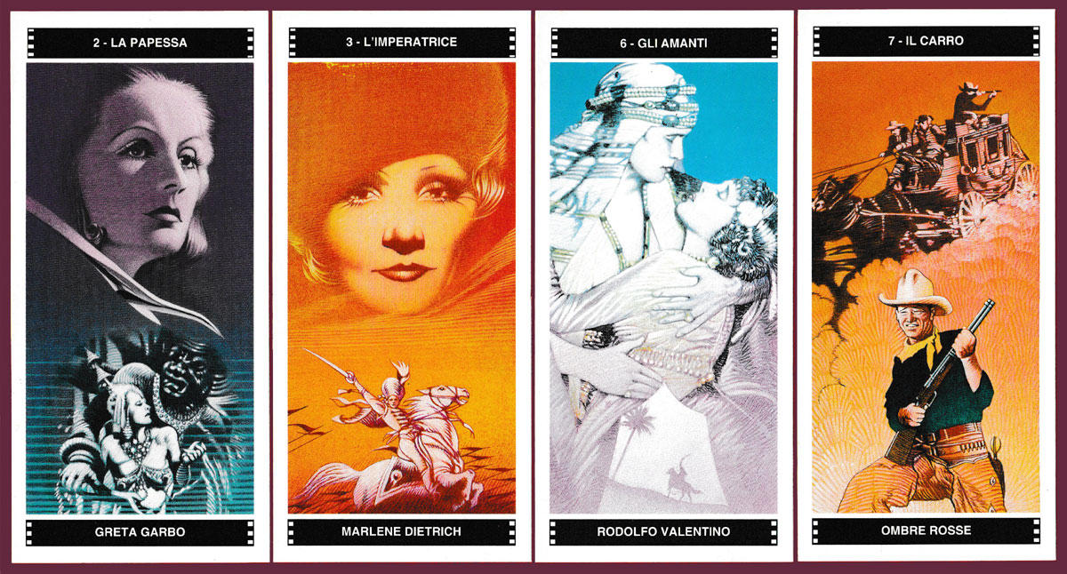 Above: ‘I Tarocchi del Cinema’ published by Lo Scarabeo, Turin, Italy, 1995. 22 cards + 2 extra cards in decorated sleeve. Size: 68 x 145 mm. © Copyright Lo Scarabeo s.r.l.