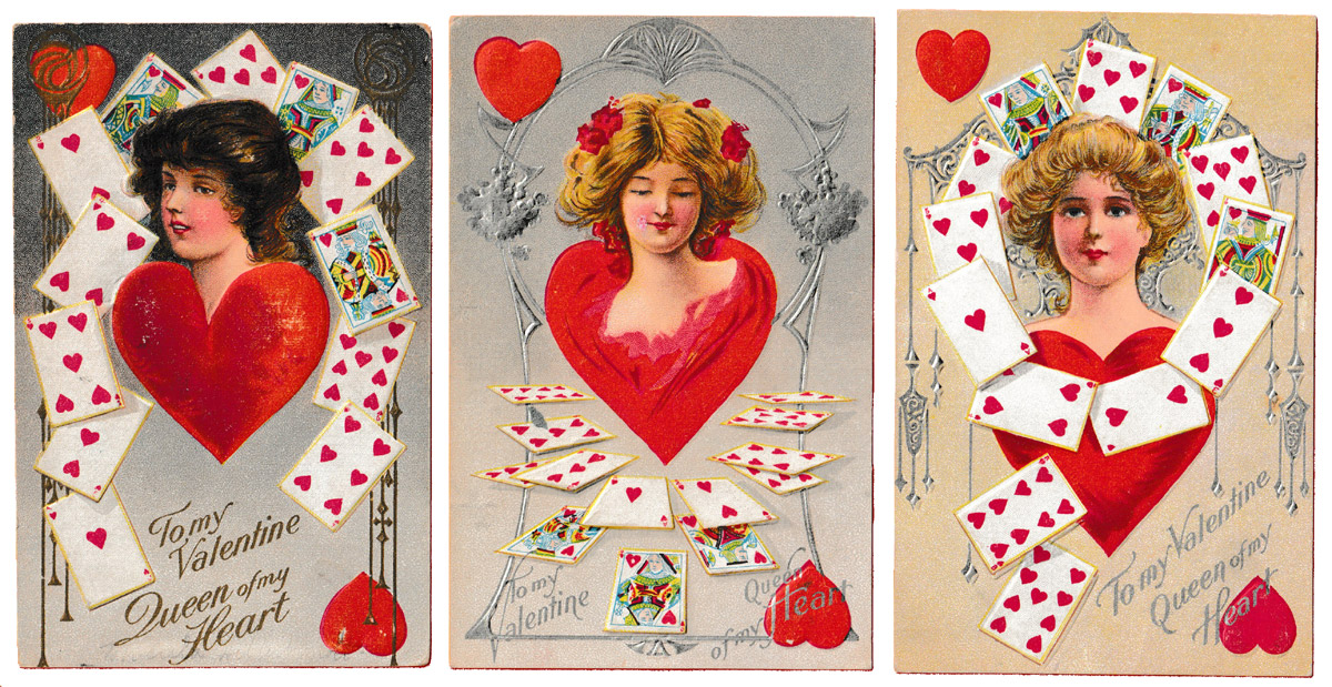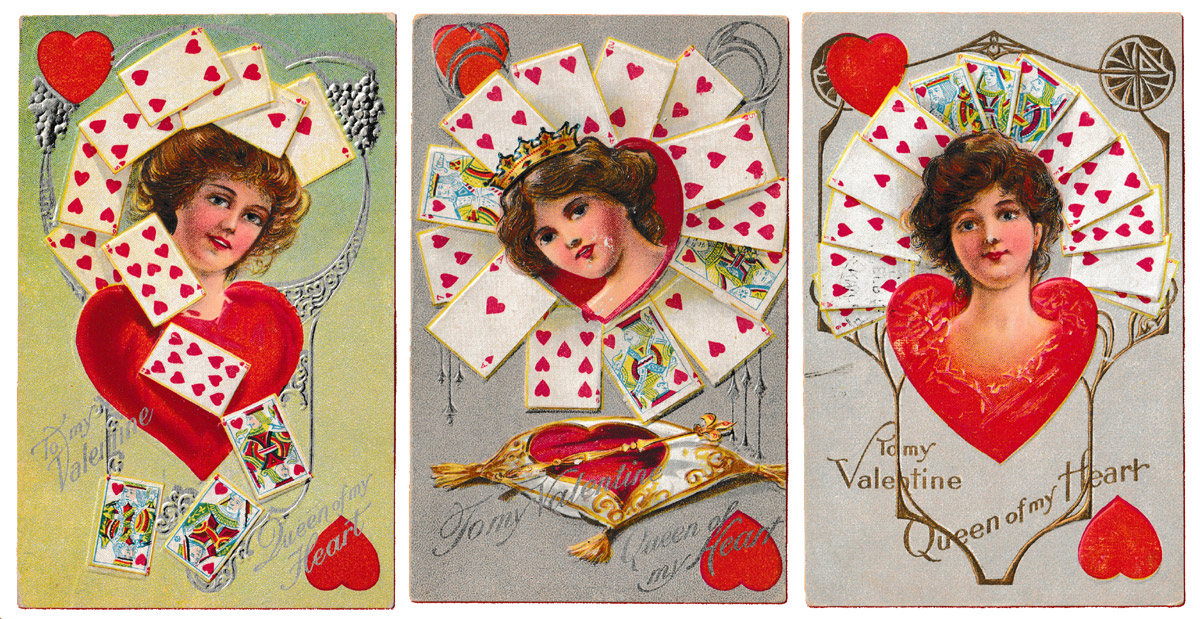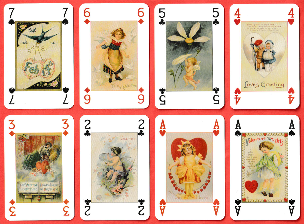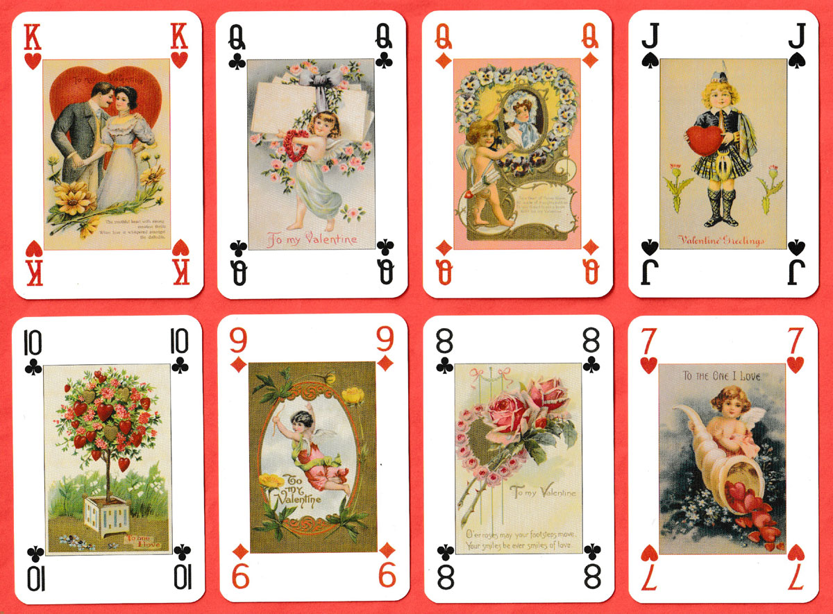 I'm also including scans of six Valentine's Day postcards from my own collection. These images are not included in the pack but all have playing cards in the design. They date from c1910-12.