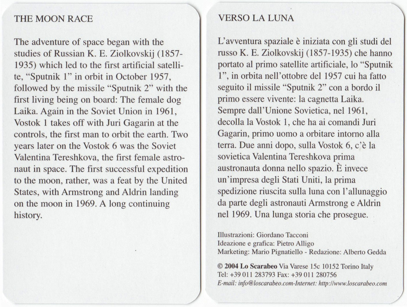 A concise overview of early space exploration illustrated by Giordano Tacconi, 2004.