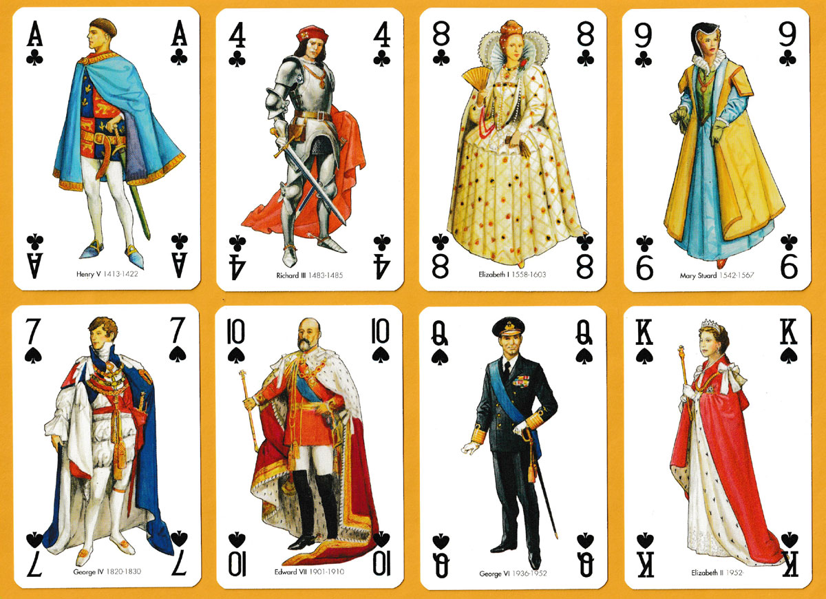 Pack devised by Pietro Alligo depicting English monarchs from Alfred the Great to Elizabeth II.