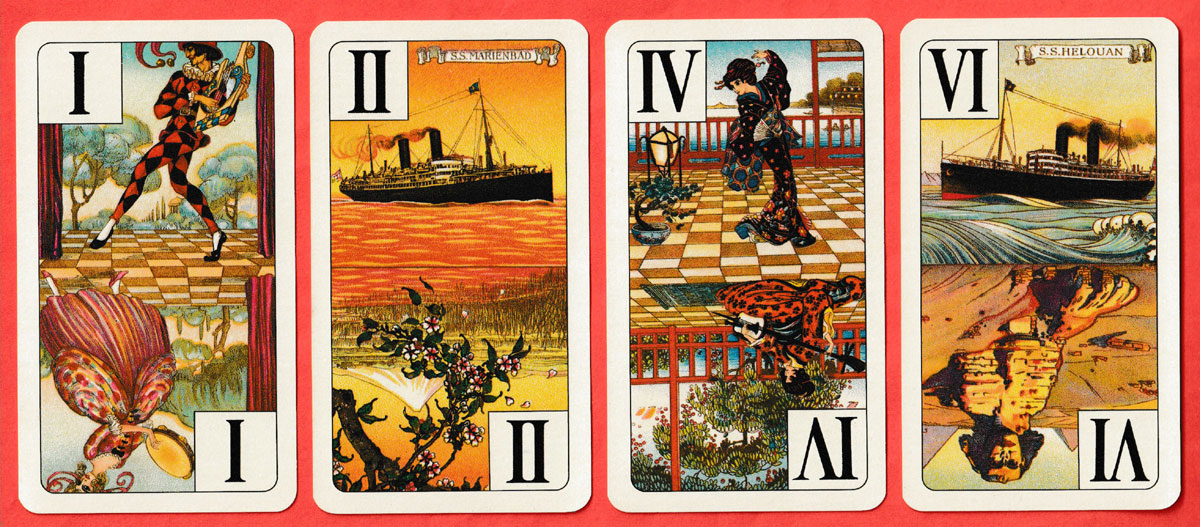 Reprint of a Tarock pack originally designed by Argio Orell for the Austrian Lloyd shipping company.