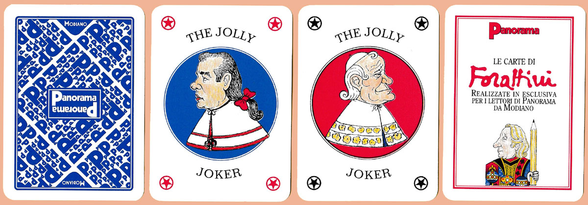 Produced in 1993 by Modiano this pack was designed by Giorgio Forattini for Arnoldo Mondadori Editore, the largest publishing company in Italy, for inclusion in Panorama, a weekly news magazine published in Milan. An earlier pack for this magazine was published in 1979.
