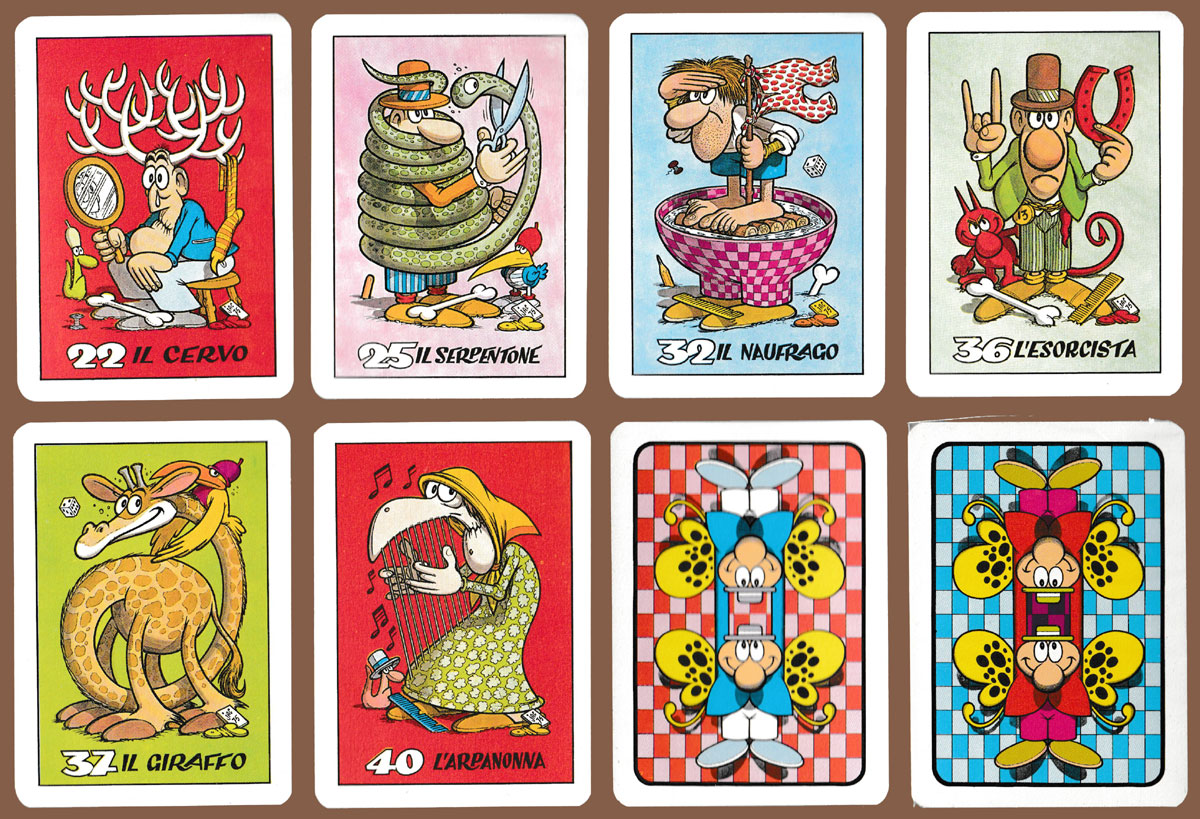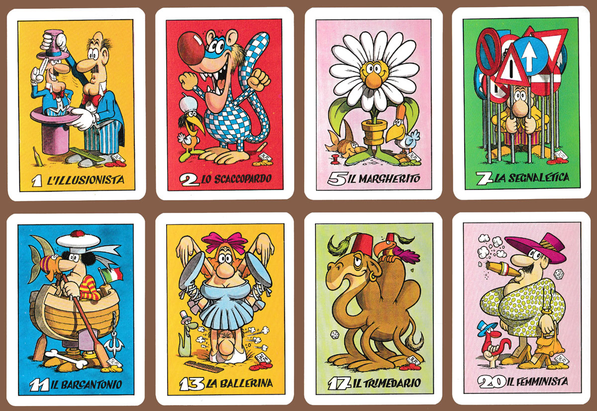 Traditional Italian card game with comic designs by Benito Jacovitti.