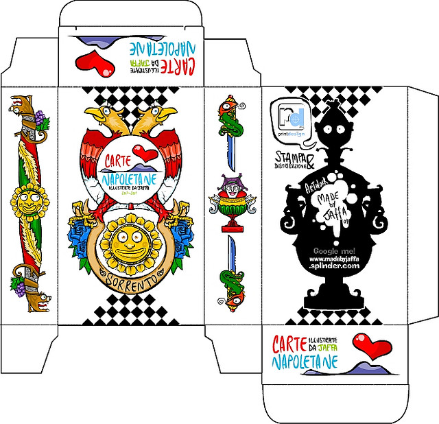 A modern twist on a classic Italian style of playing cards, this pack created by Raffaele Iaccarino is typical set of the southern regions of Italy mixed with his own style of artwork.
