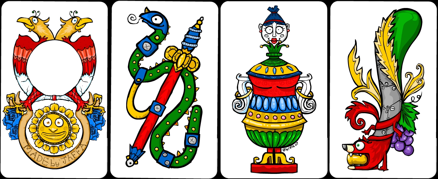 The Cavaliers are man/beast creatures. The Valets (or Pages) are male for clubs and swords, and fema...
