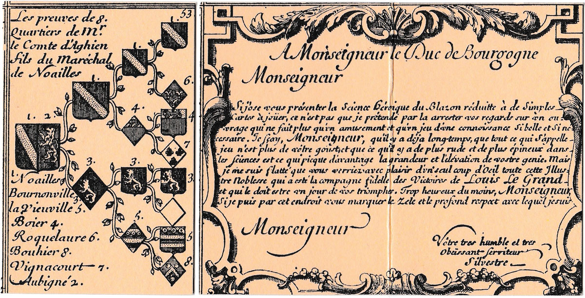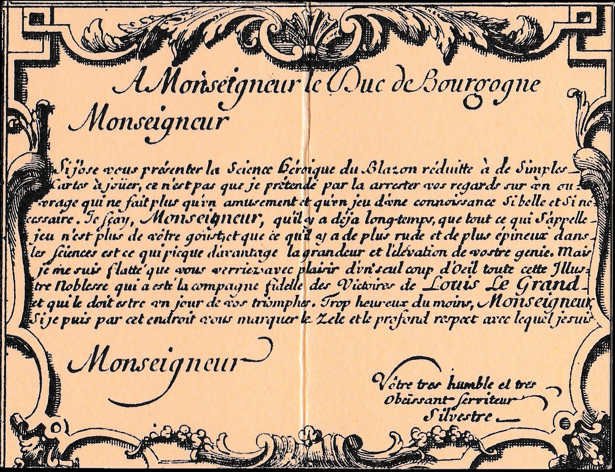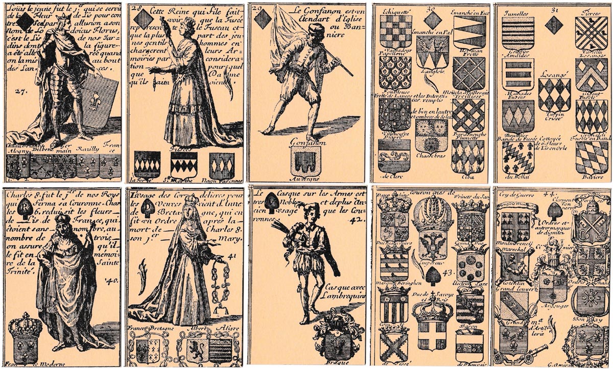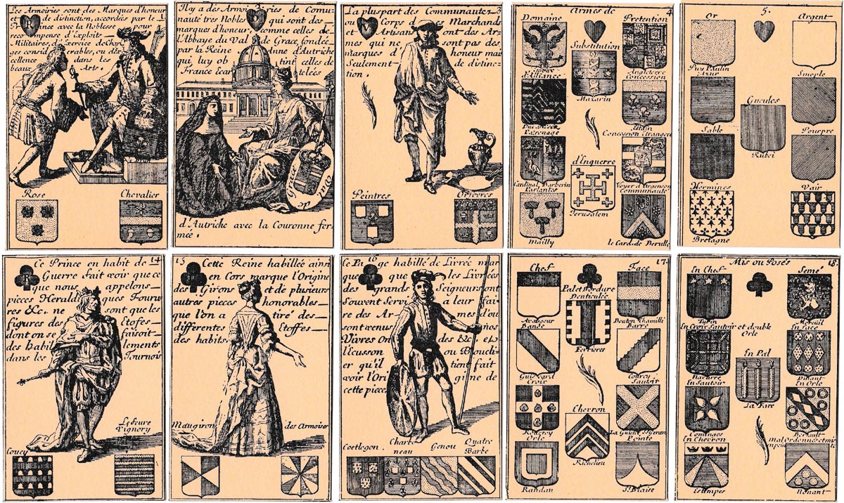 Reproduction of a French pack by François Silvestre intended to teach heraldry, produced in Paris in 1712.