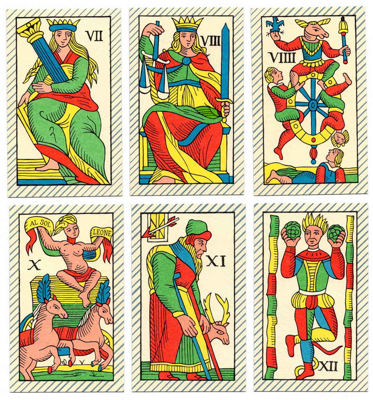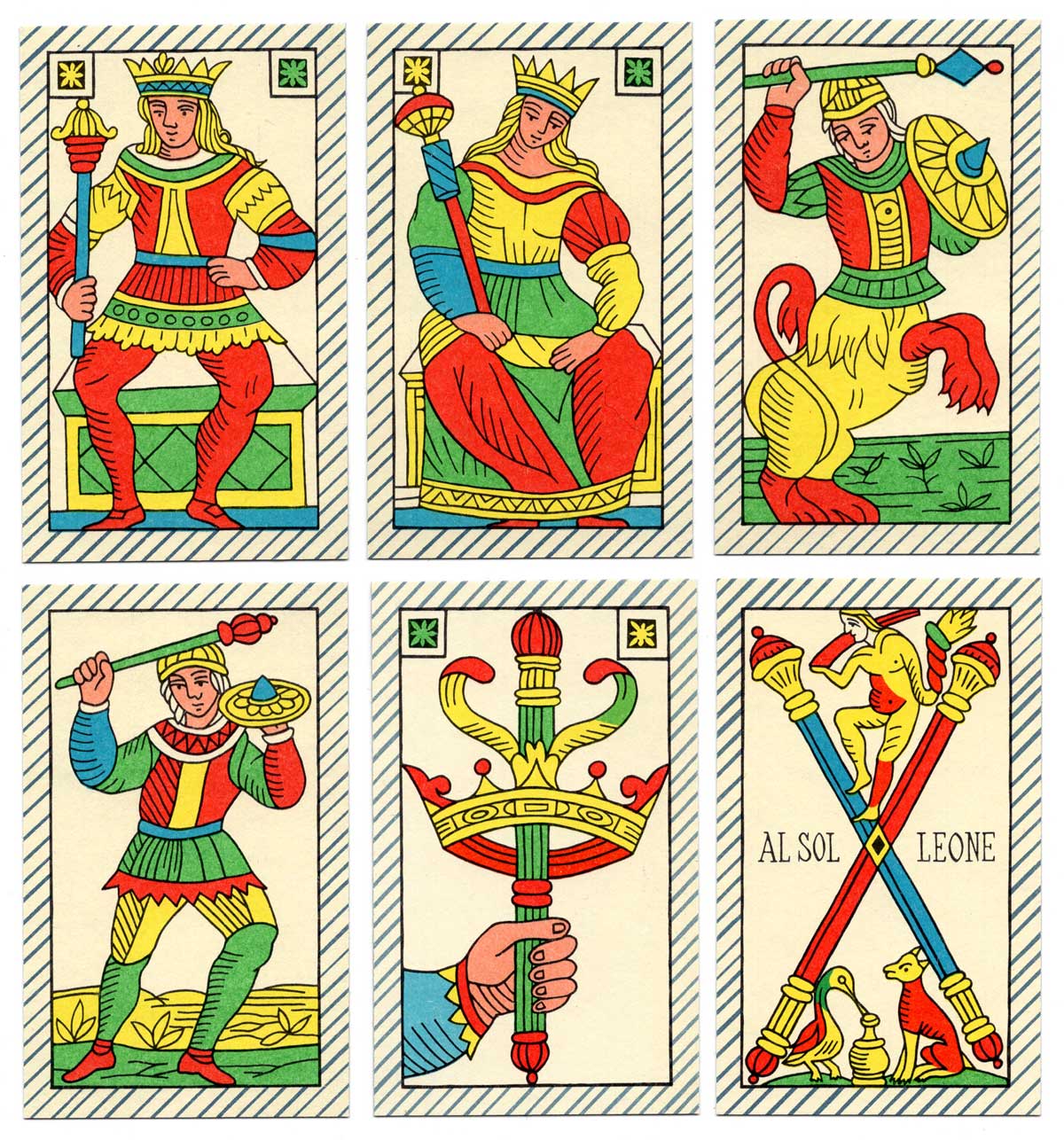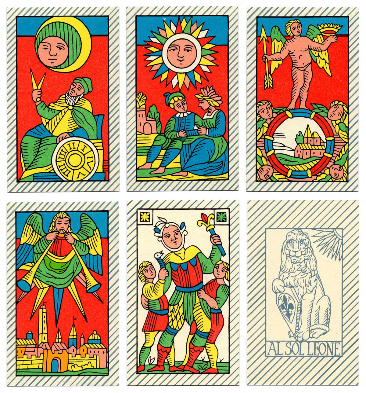 Above: Minchiate Fiorentine created by Costante Costantini, published by Edizioni del Solleone in an edition of 2000 in 1980. Cards measure 95x58mm.