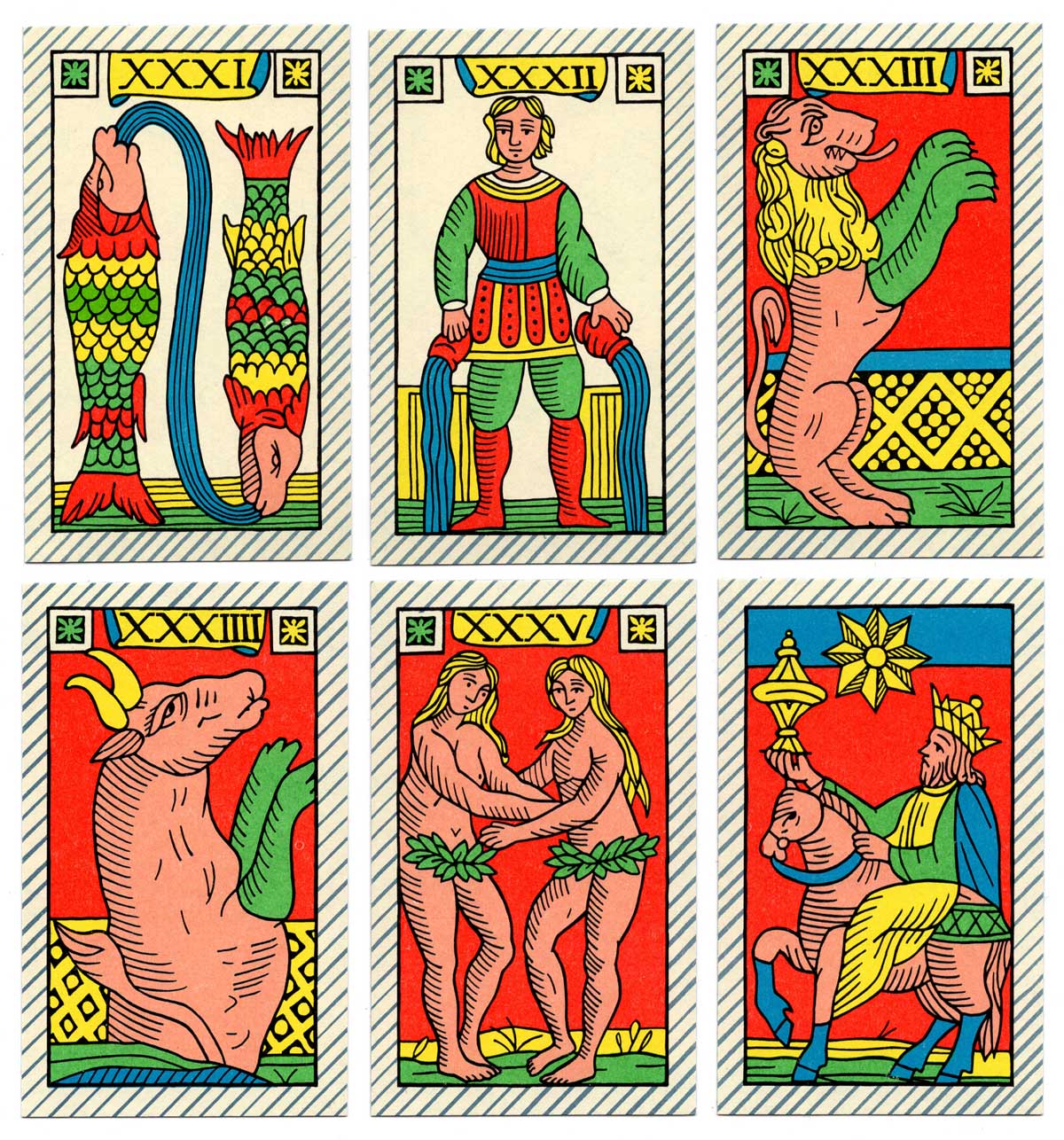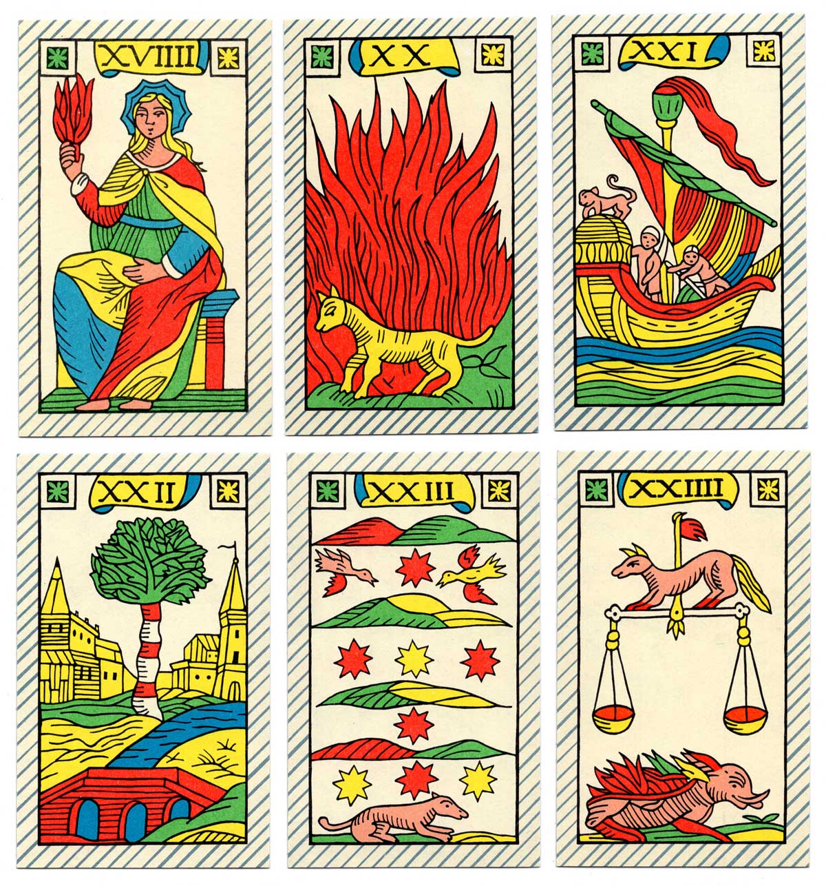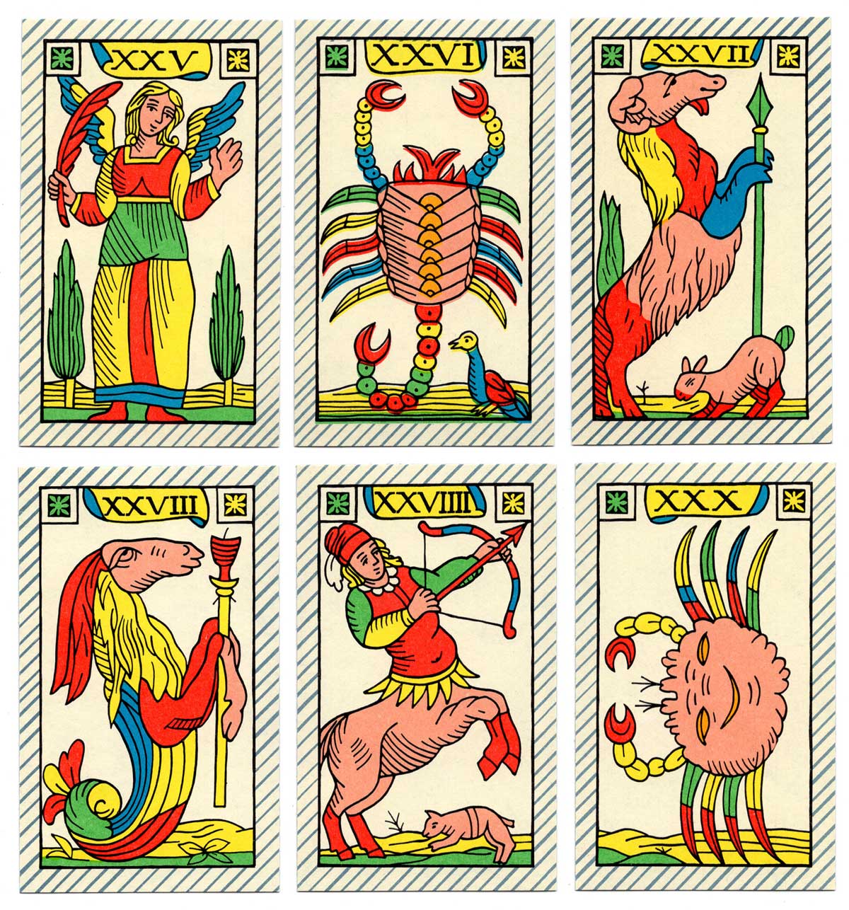 Above: Minchiate Fiorentine created by Costante Costantini, published by Edizioni del Solleone in an edition of 2000 in 1980. Cards measure 95x58mm.