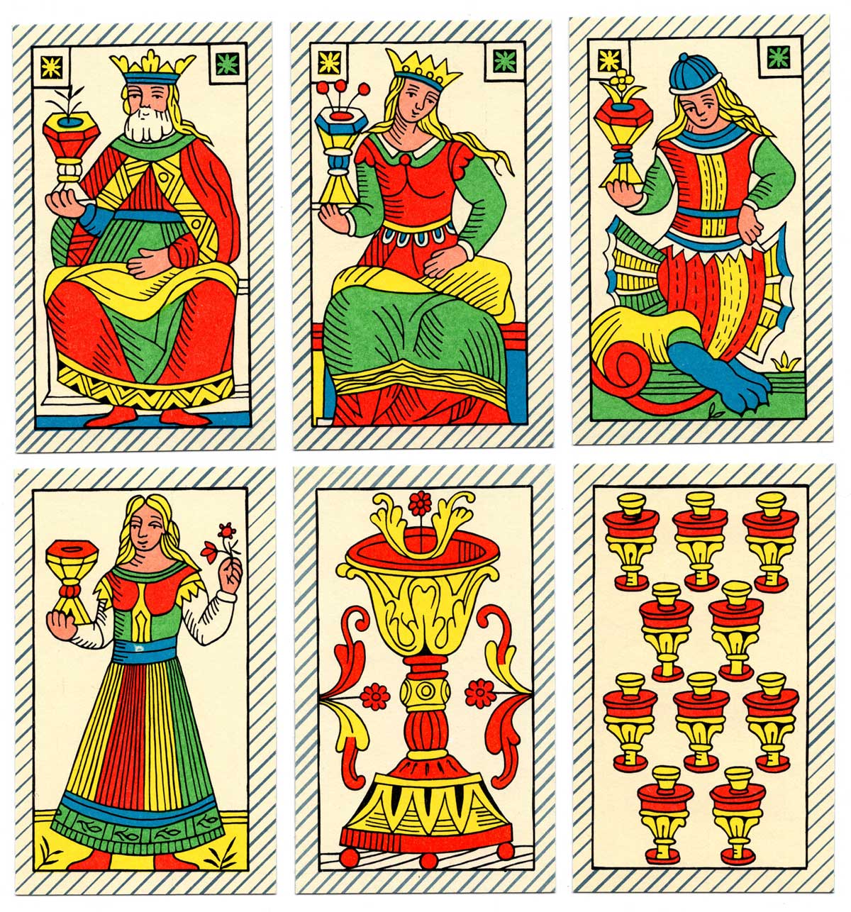Gumppenberg published several new decks by artists or engravers of the day. The designs are clear an...
