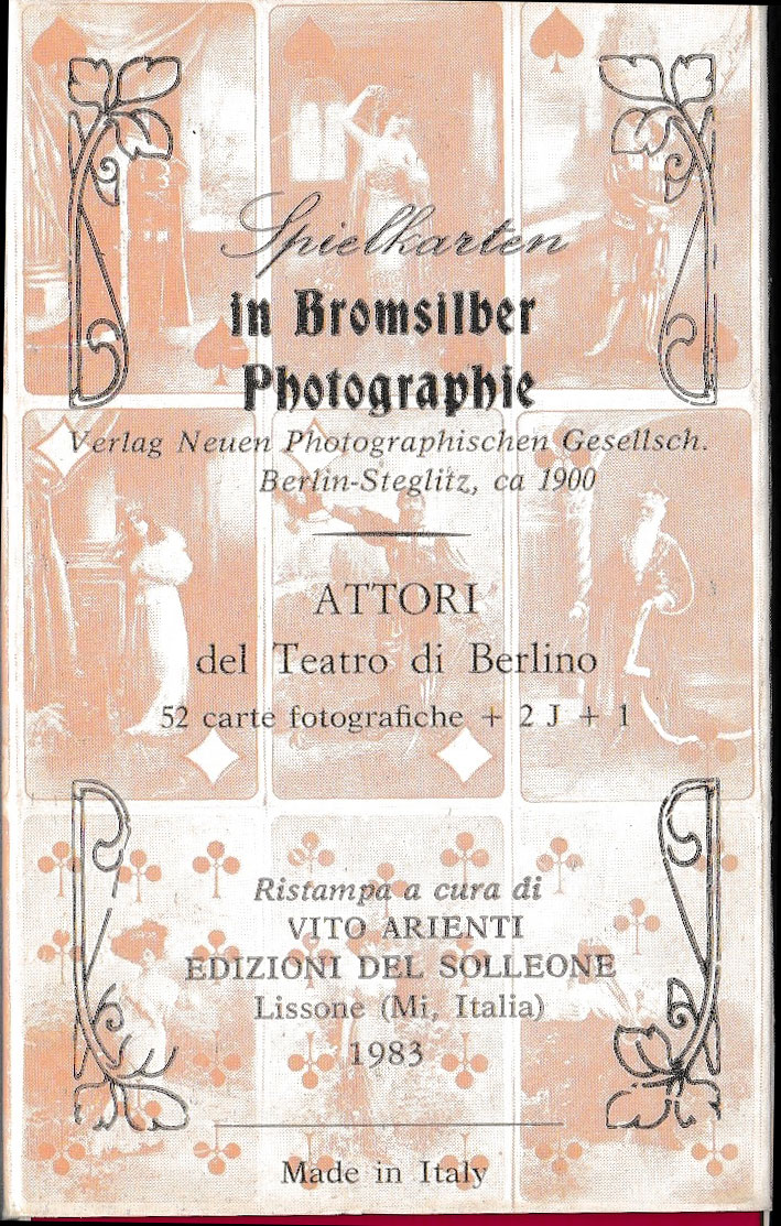 This limited facsimile edition of 800 packs was published in 1983 by Vito Arienti of Edizioni del Solleone. It is a reproduction of a German pack originally produced by the Verlag der Neuen Photographischen Gesellschaft in Berlin, c. 1900.