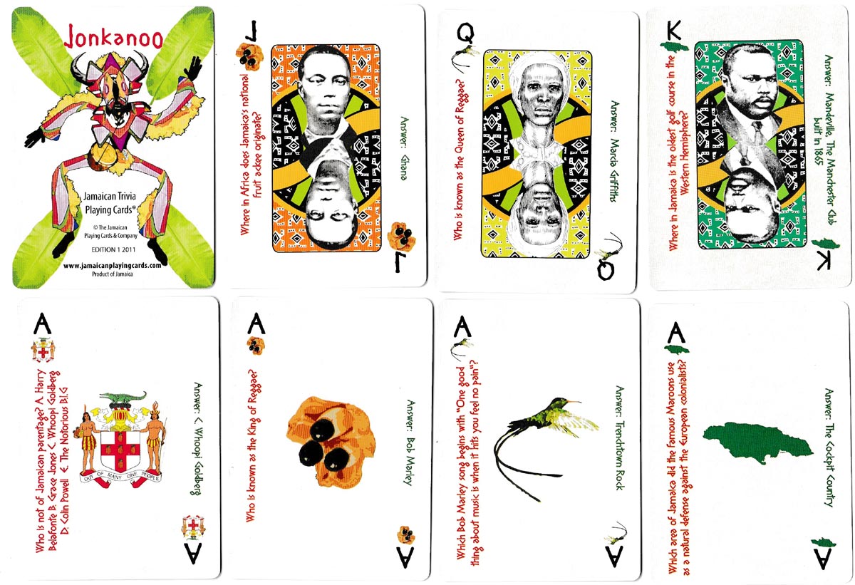 Above: Jamaican trivia playing cards created by Emprezz Mullings and produced by the Jamaican Playing Cards & Co., Kingston, Jamaica, 2011