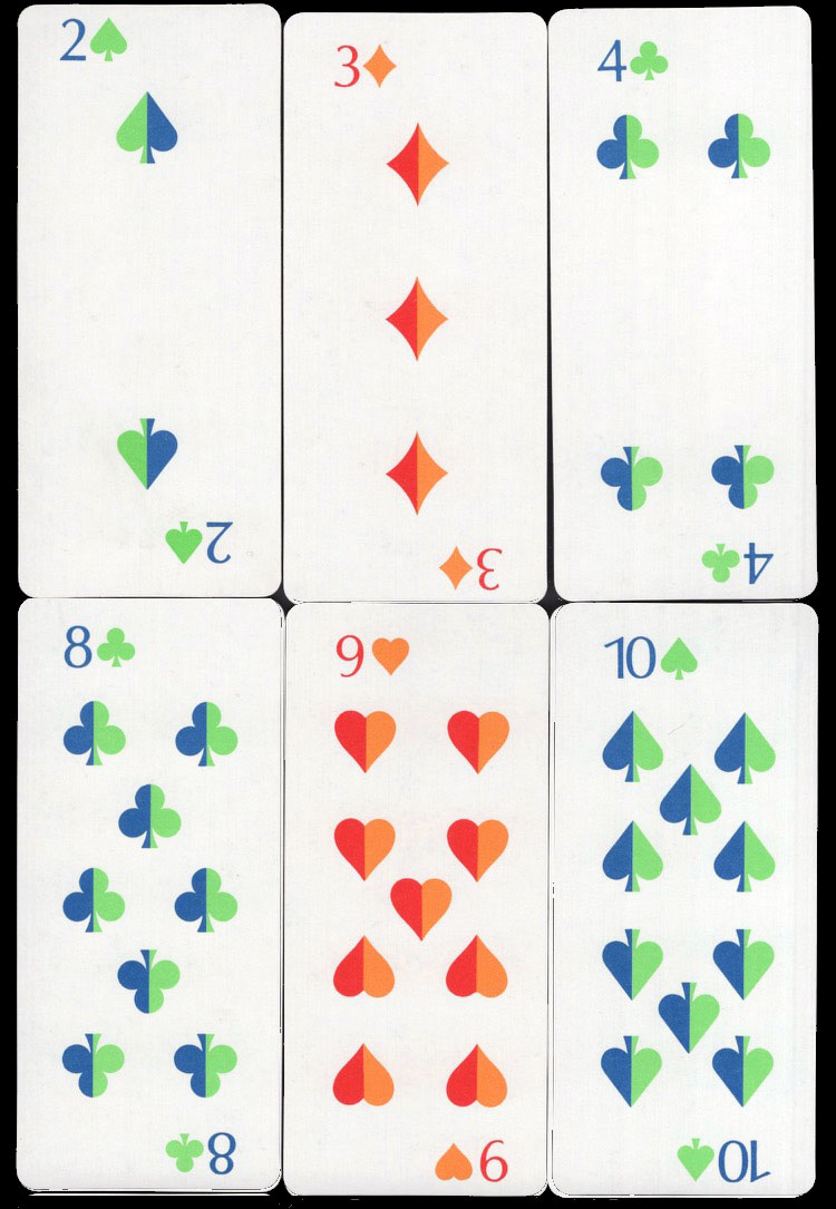 The pip cards are all split between two different shades. These vintage cards have now become very collectable.
