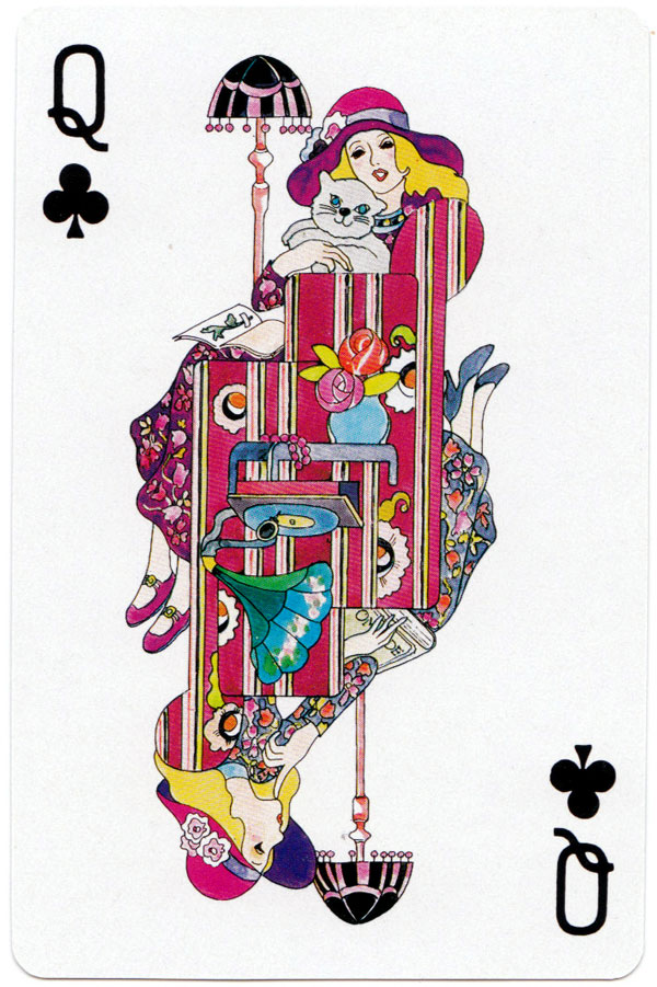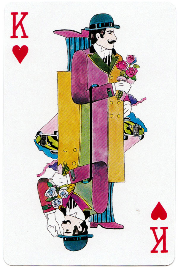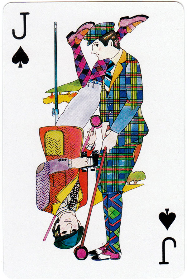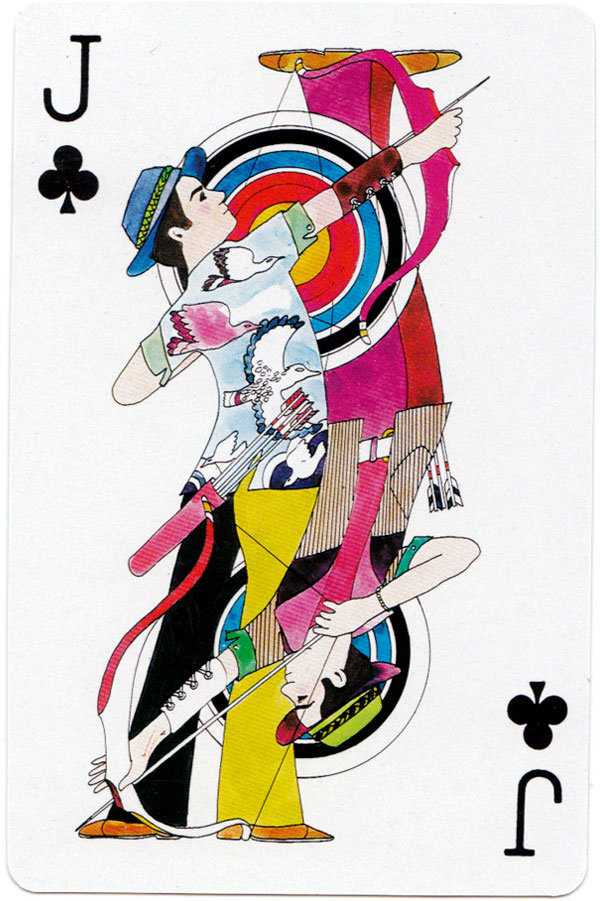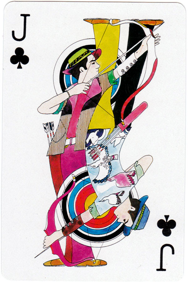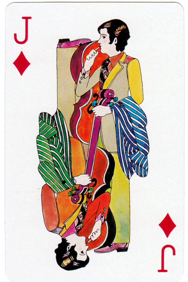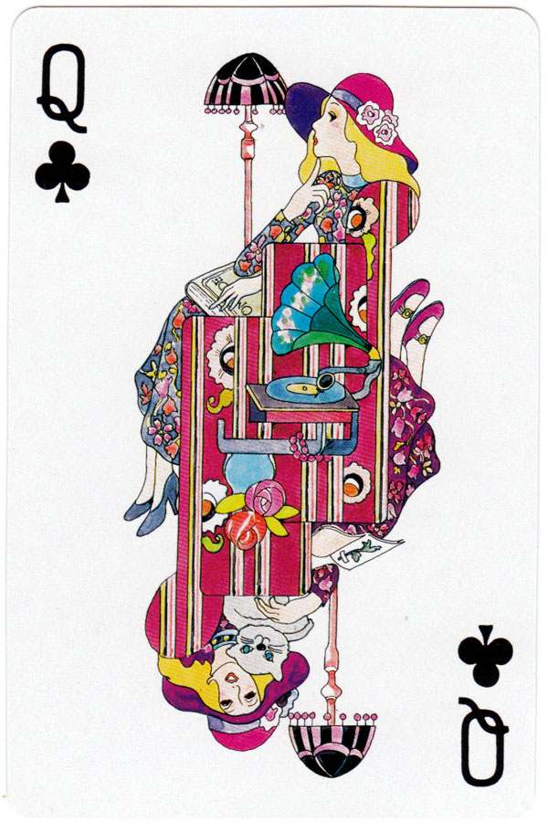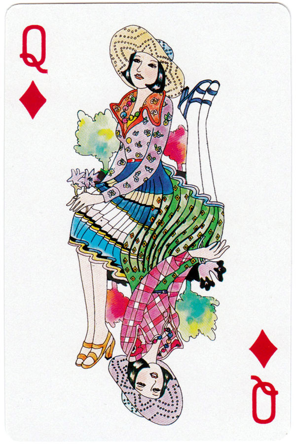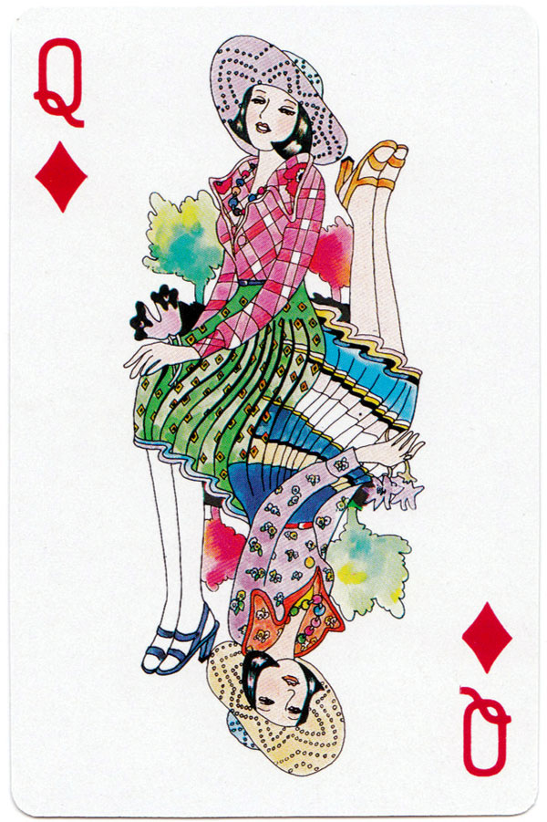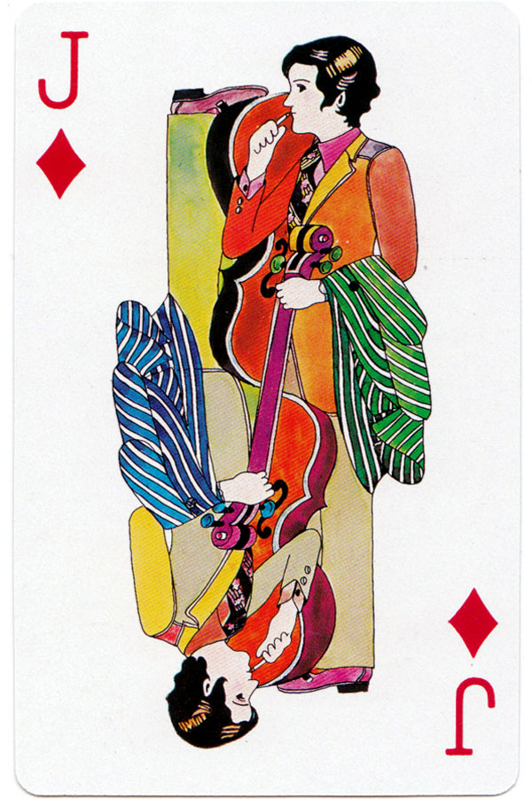 These “Roaring Twenties” playing cards, published by Angel Playing Cards Co Ltd (Japan, 1980) are supposed to evoke the spirit of this era with colourful and original artwork, which looks more like retro poster designs and looks better enlarged.