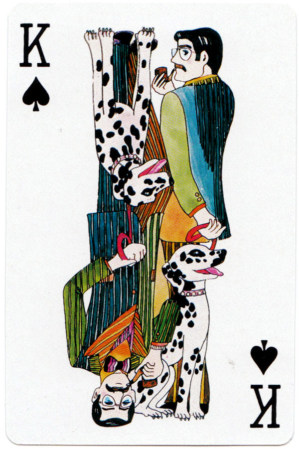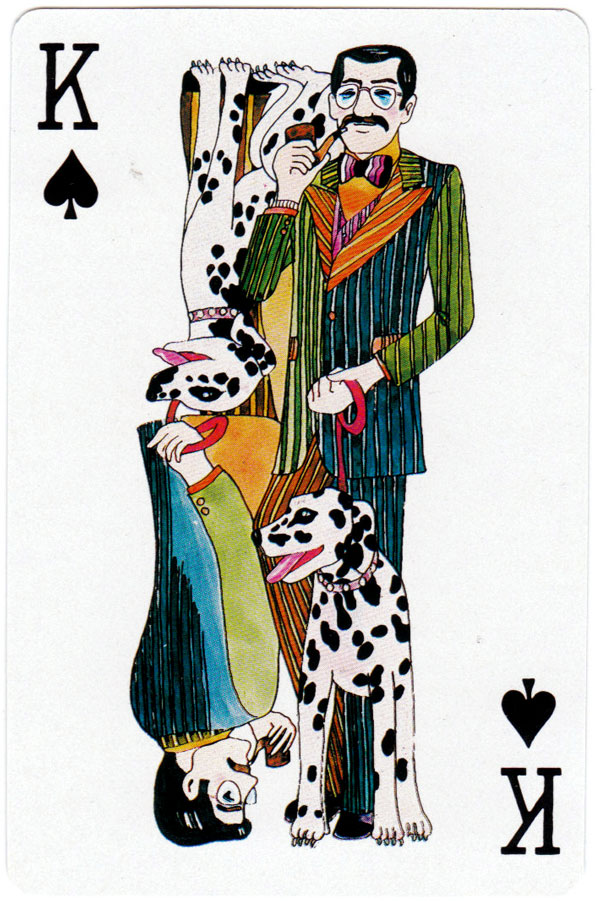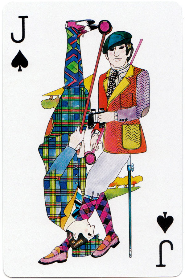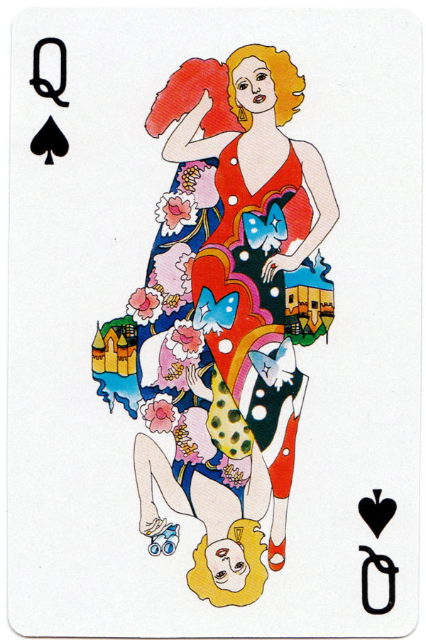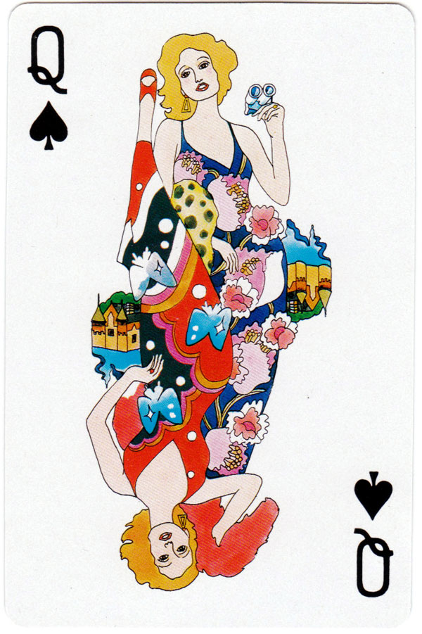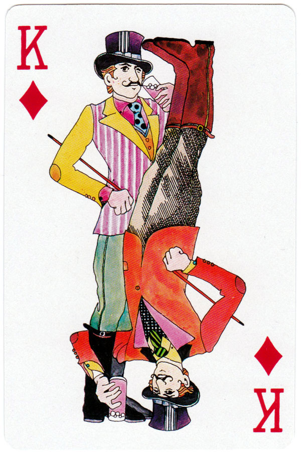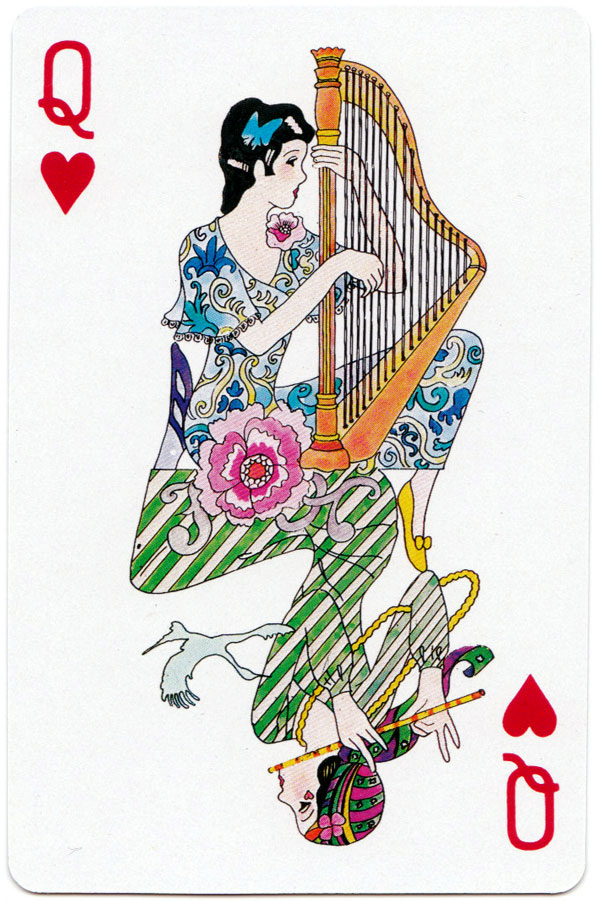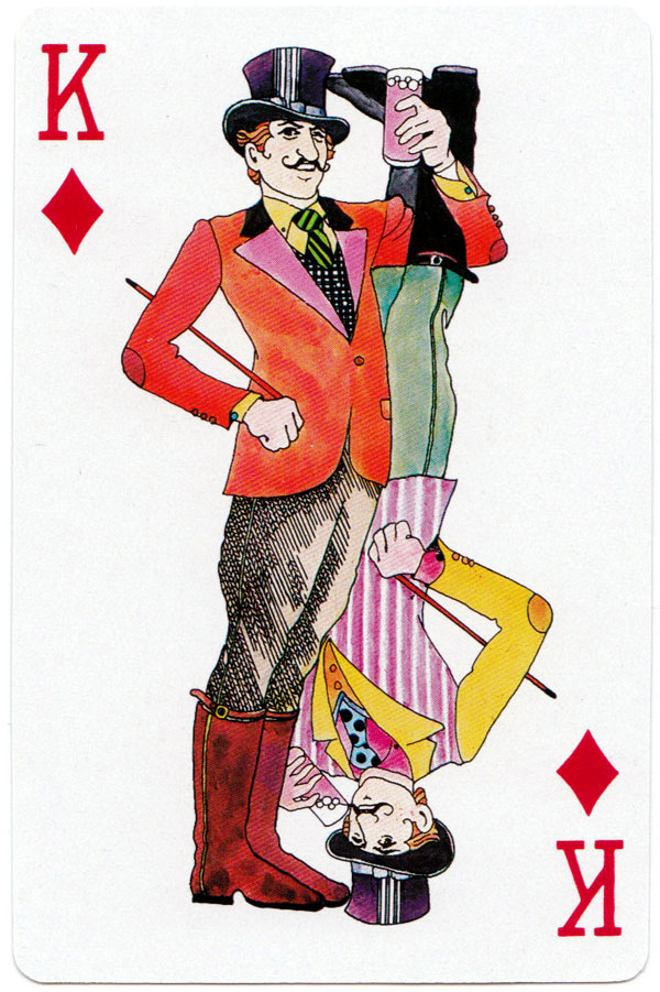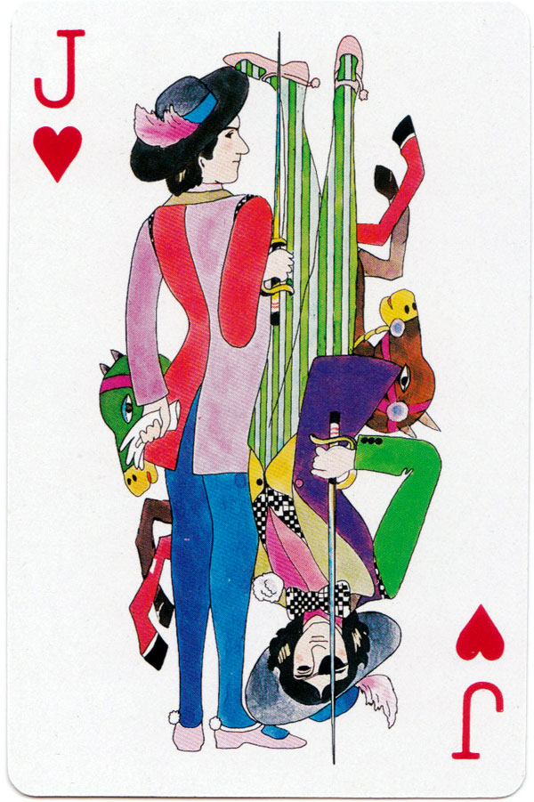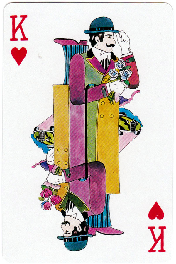 These “Roaring Twenties” playing cards, published by Angel Playing Cards Co Ltd (Japan, 1980) are supposed to evoke the spirit of this era with colourful and original artwork, which looks more like retro poster designs and looks better enlarged.