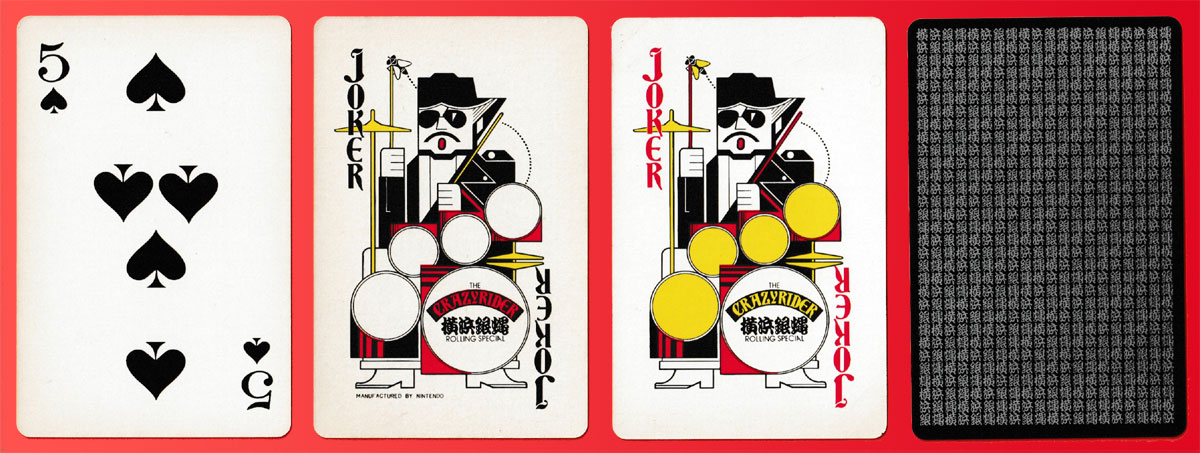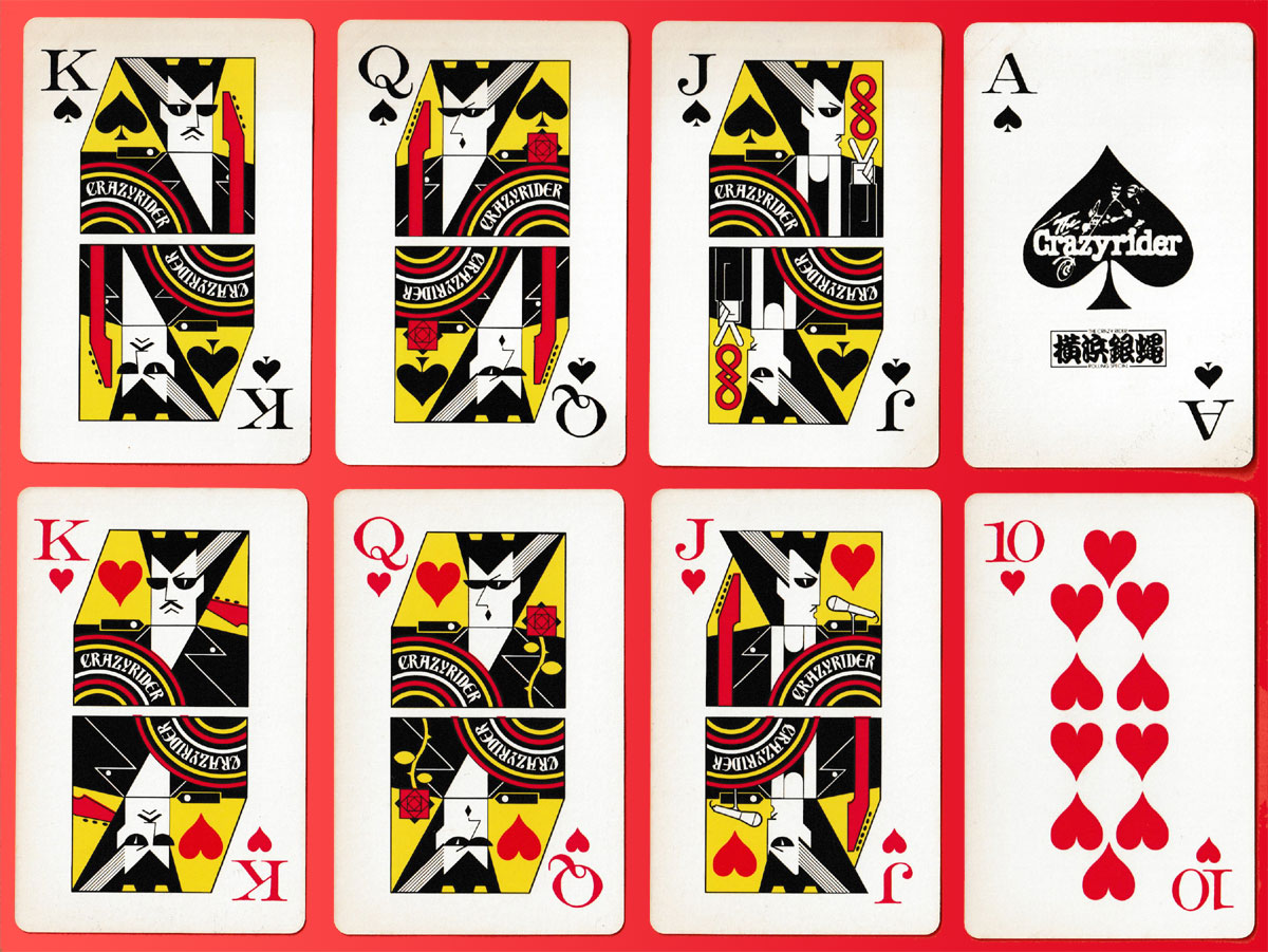 Above: Crazyrider playing cards made by Nintendo, Japan, c1985. 52 cards + 2 Jokers in tuck box. Size: 58 x 89 mm.
