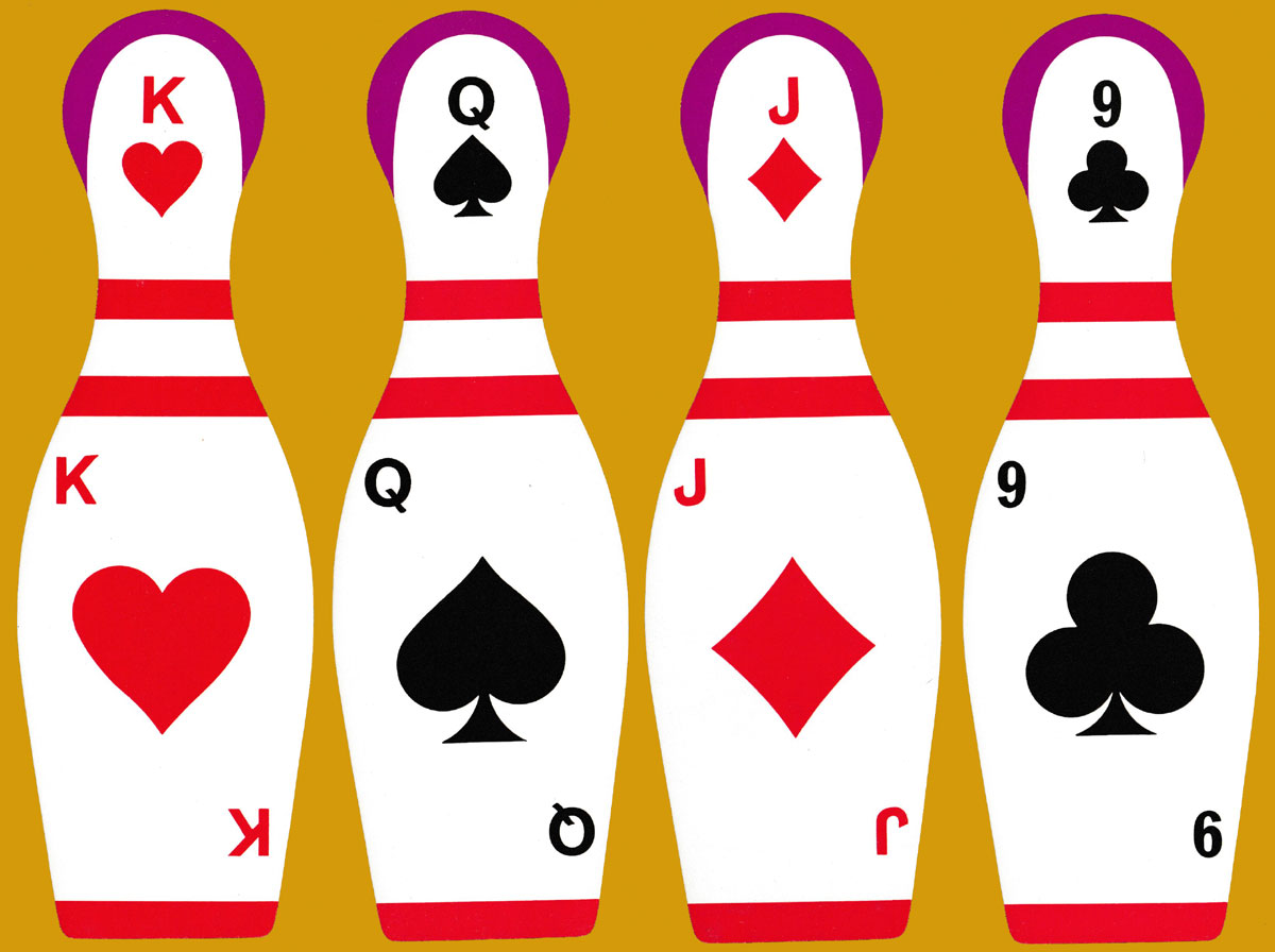 Unusual cards in the shape of skittles, intended for fanning.