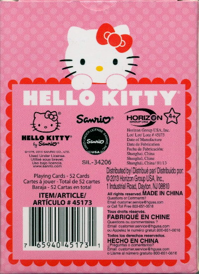 “Hello Kitty” playing cards published by Sanrio, manufactured in China, 2013.