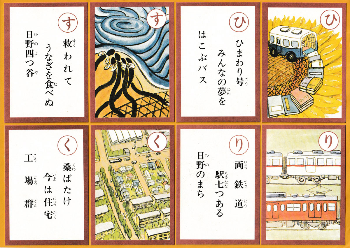 Special version of Iroha Karuta, a traditional Japanese matching game, made for Hino City, Tokyo.