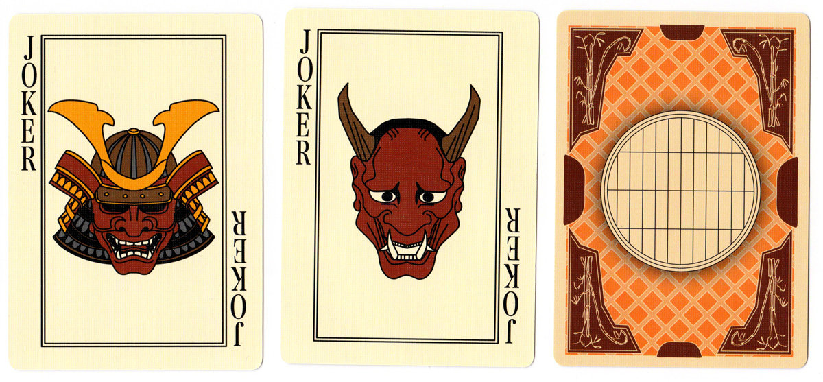 There are two jokers, each depicting traditional Japanese samurai masks.