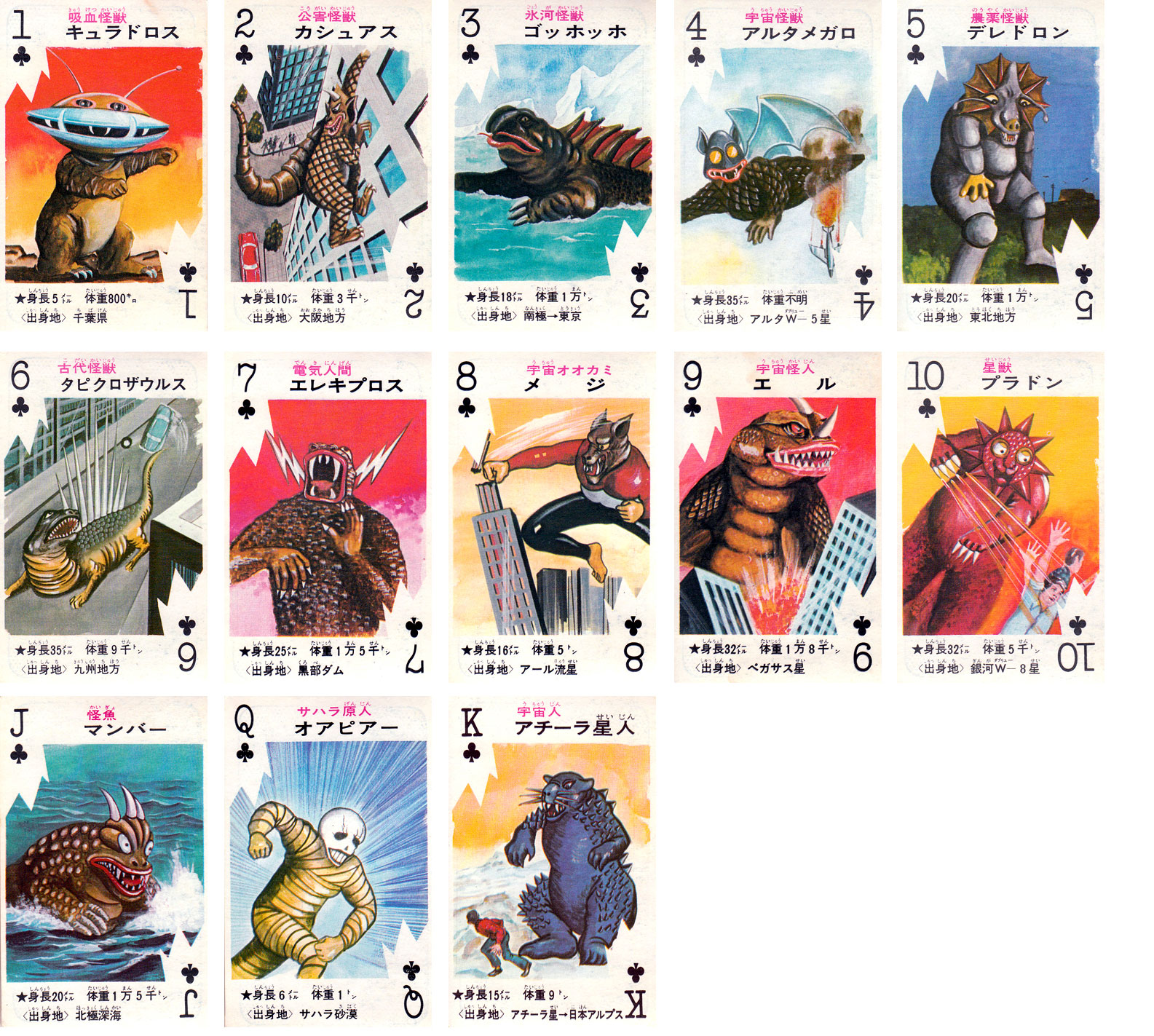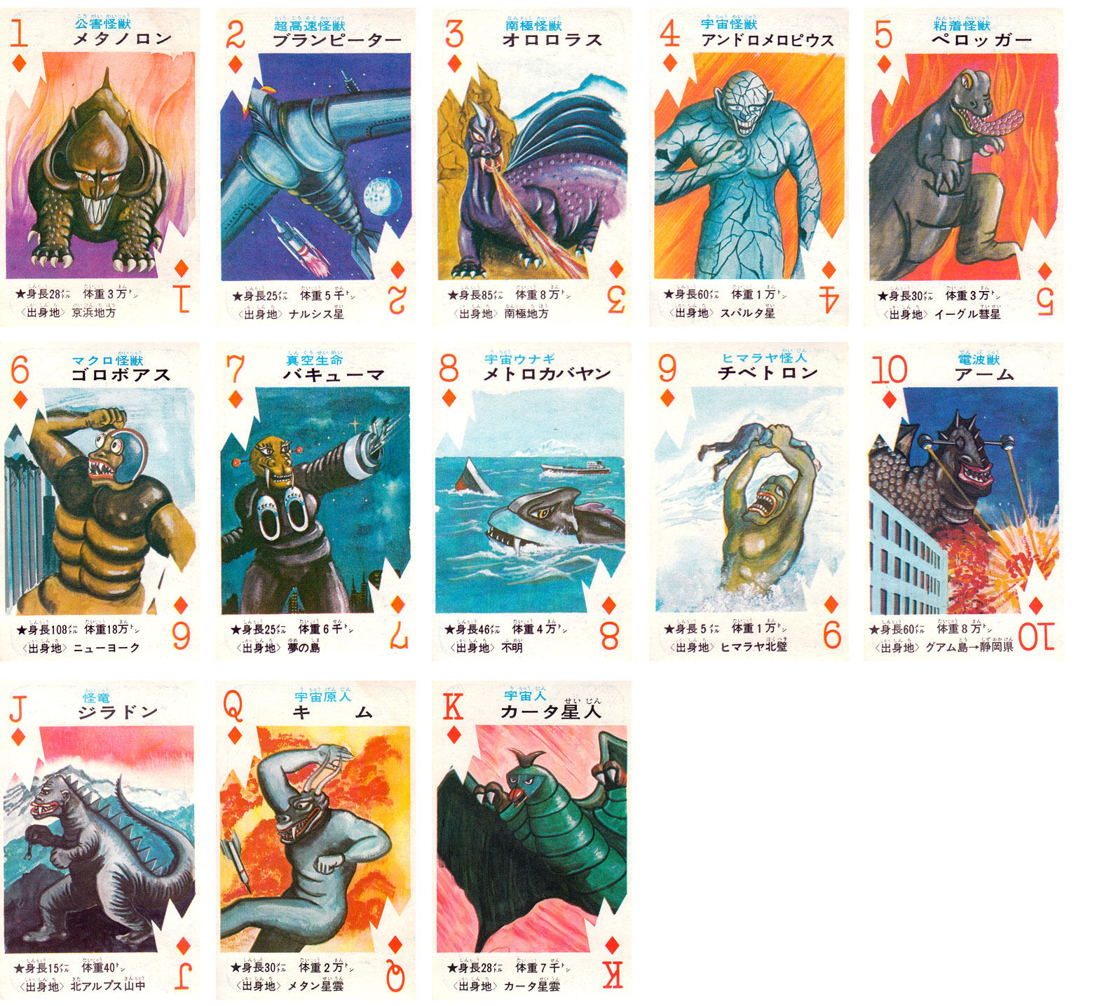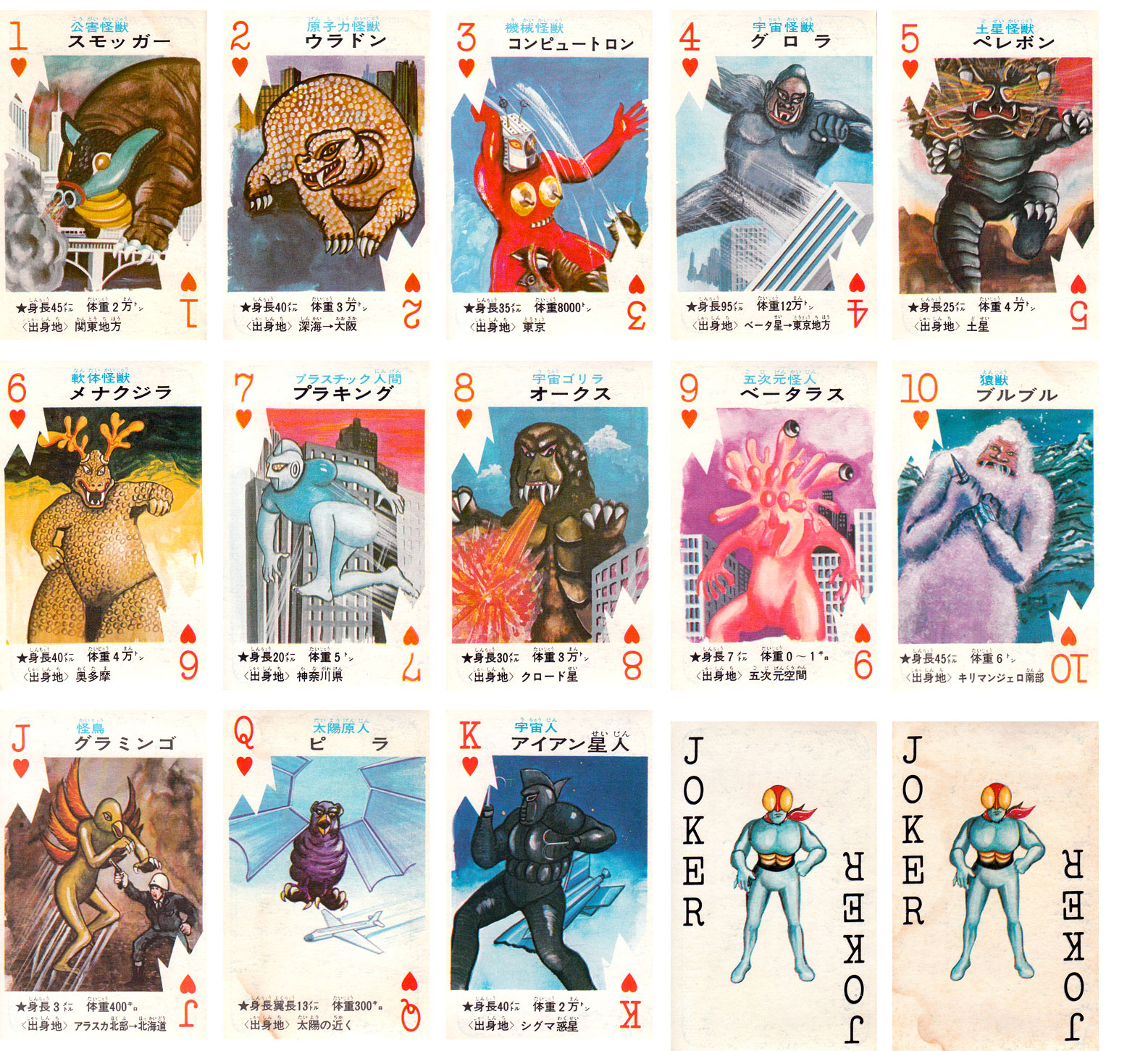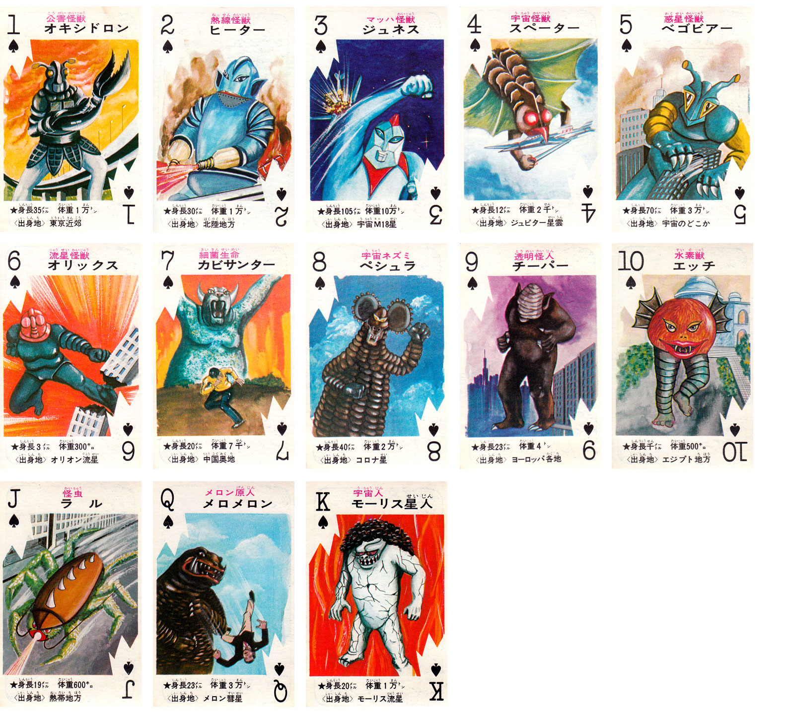 Quirky Pachimon playing cards from 1970s Japan, featuring unique monsters and aliens, given away with Kewpie mayonnaise.