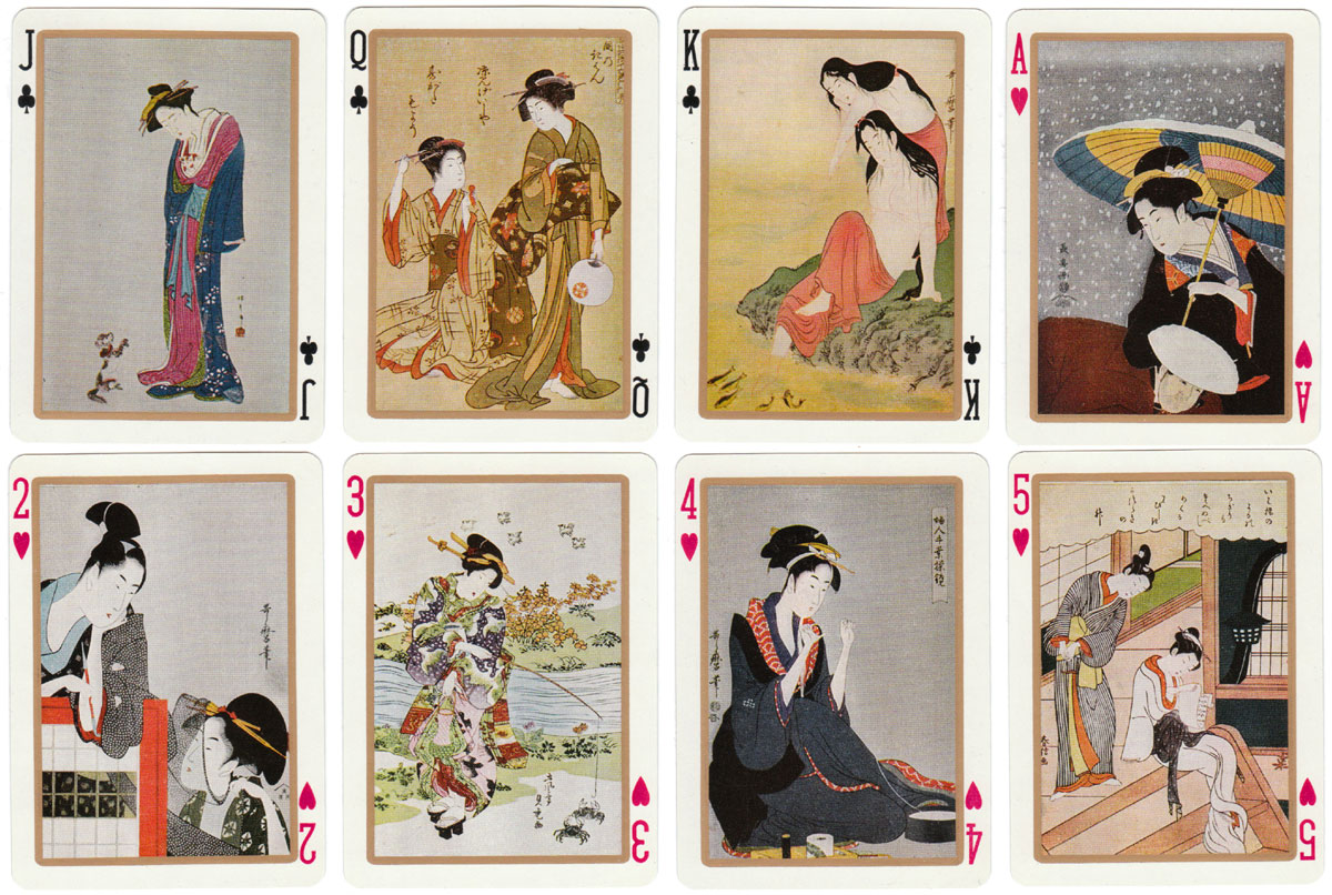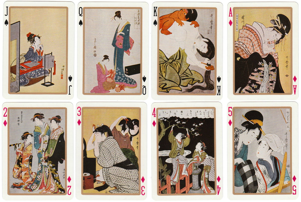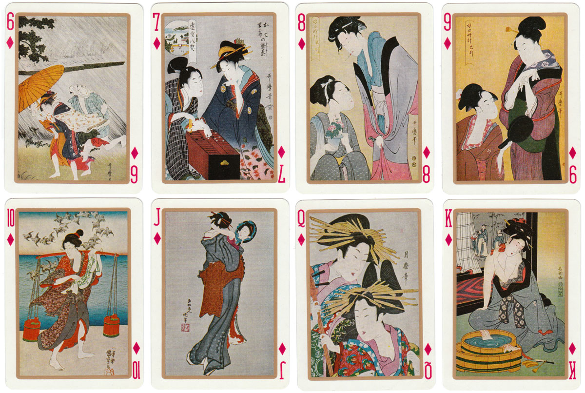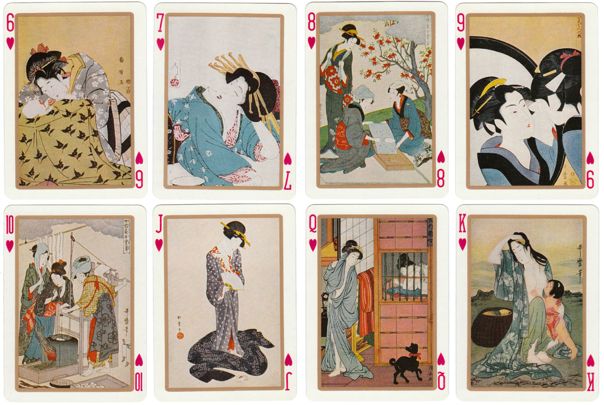 UTAMARO (1753-1806) created woodblock prints of beautiful women and the Utamaro playing cards show details from some of his works.