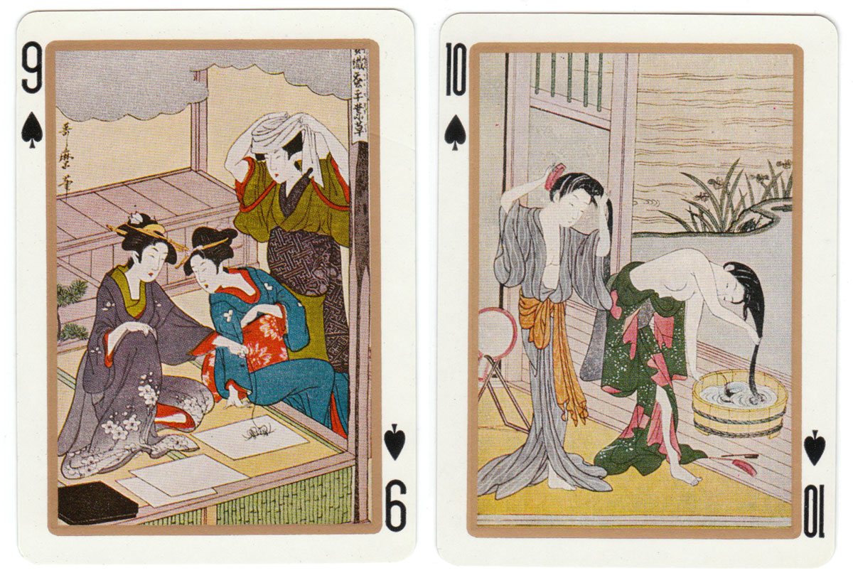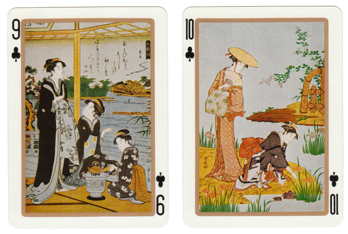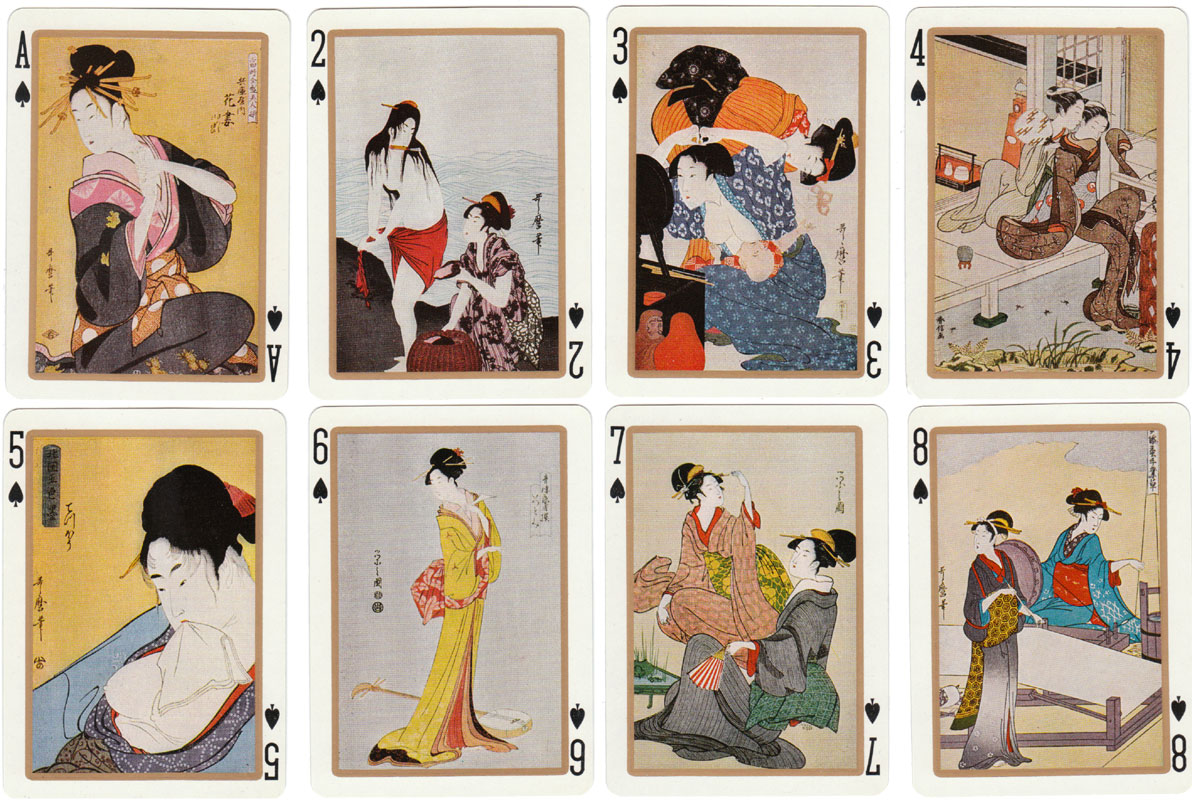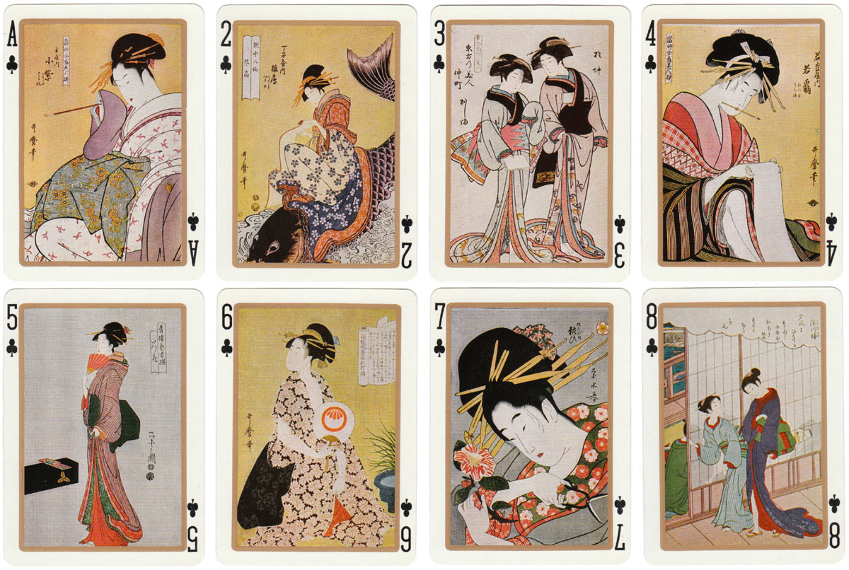 UTAMARO (1753-1806) created woodblock prints of beautiful women and the Utamaro playing cards show details from some of his works.