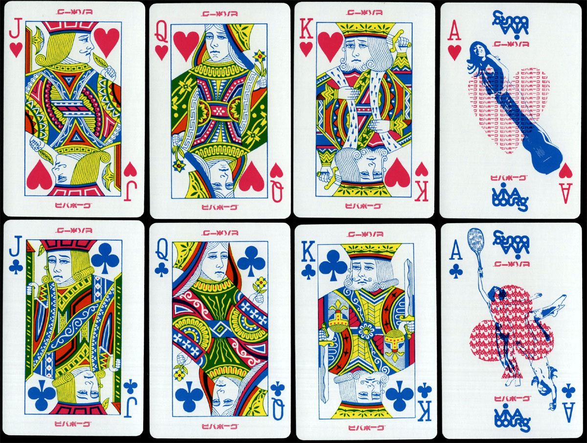 Advertising playing cards for a Japanese fashion house, with reversed colours.
