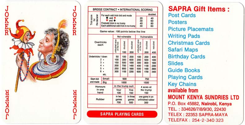 “Kenya Tribus” playing cards published by Sapra, Mount Kenya Sundries Ltd, Nairobi, 1991