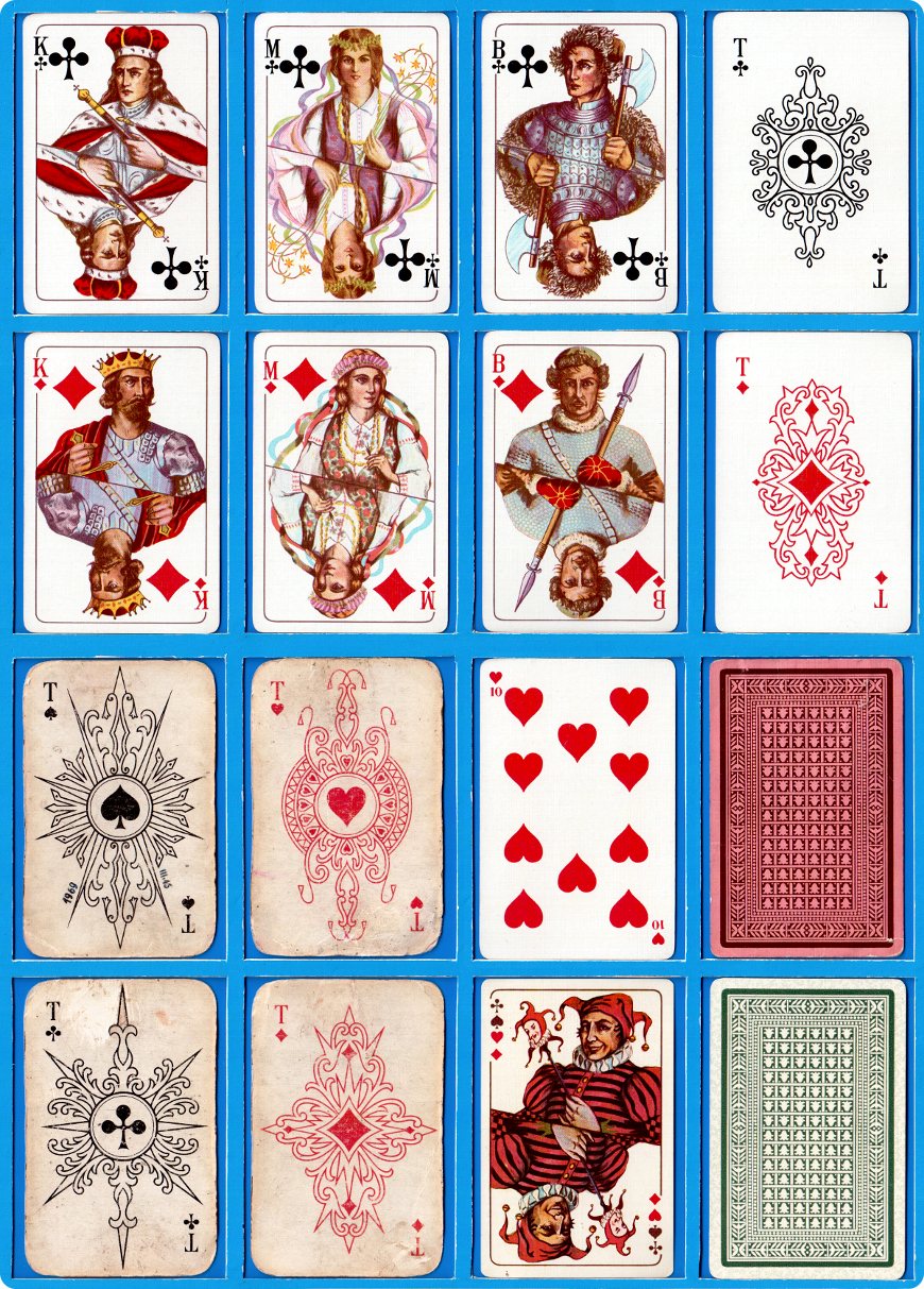 Above: Kunigaikščiai ('Dukes') playing cards printed by offset by by Spindulys Printing Co., Kaunas, Lithuania during the period c.1920-1940. 52 cards + Joker.