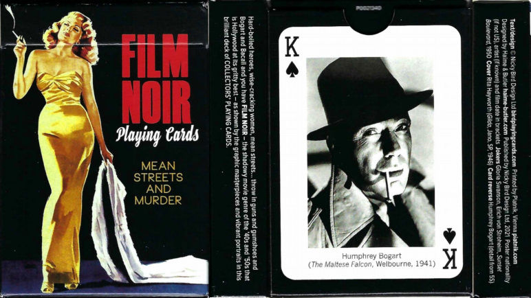A deck of 55 cards, celebrating hard boiled heroes, wise-cracking women, mean streets, guns and gumshoes!