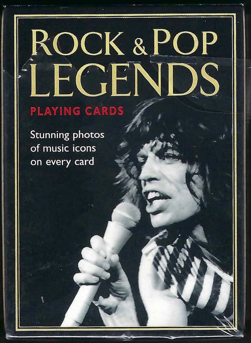 Above: Rock & Pop Legends playing cards, each card showing photographs of iconic performers in action.