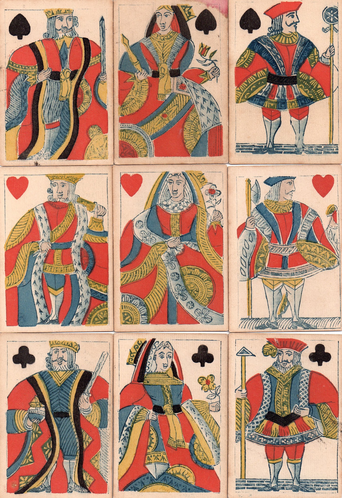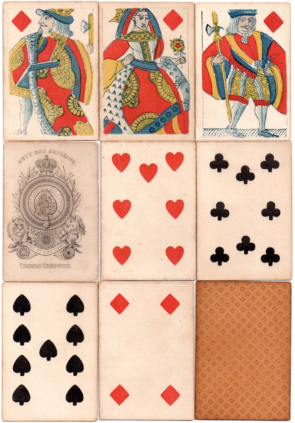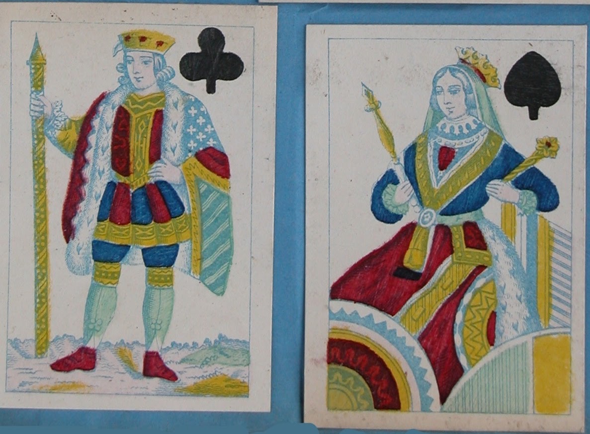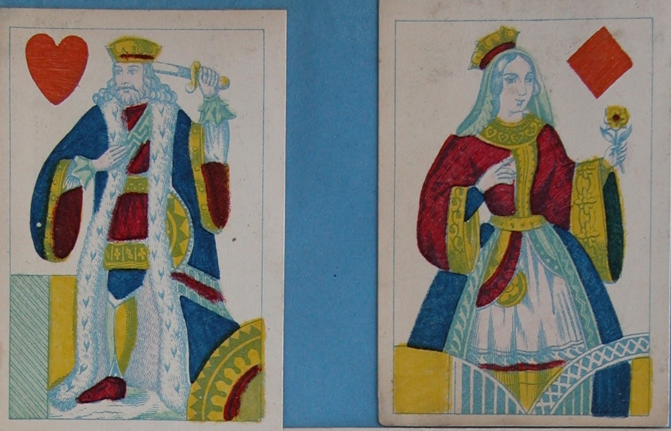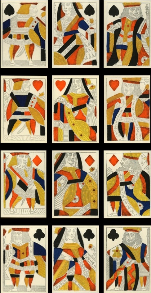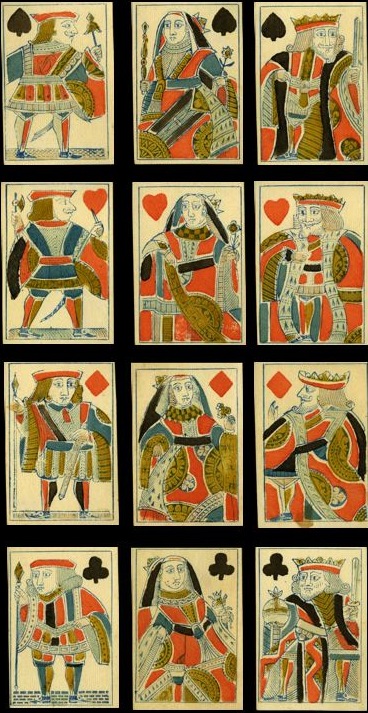 A much more extraordinary pack comes from Creswick, again probably from the 1830s. This looks like an attempt to repersonalize the figures, that traditionally were distorted and stocky, but they look more like their 16th and 17th century predecessors than contemporary courts.