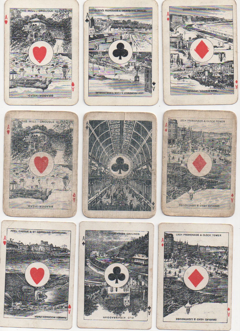 Two antique packs with scenic aces illustrating places on the Isle of Man.