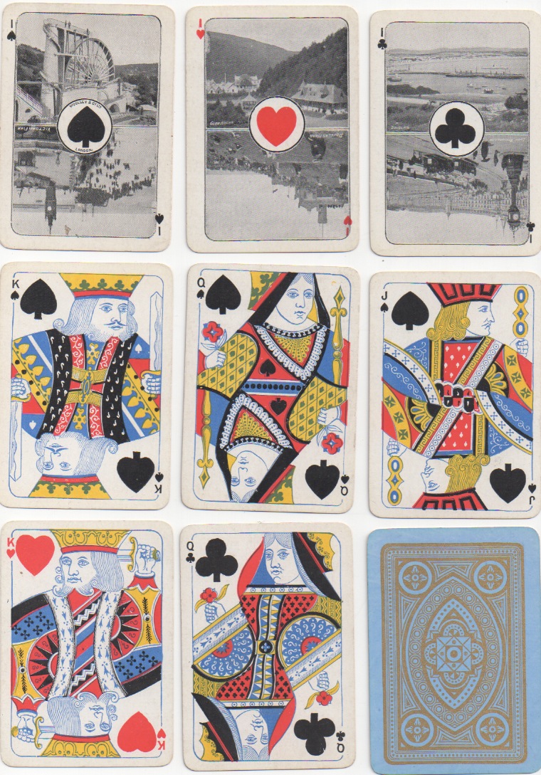 Other makers have no special back design and no reference to Webb's, but pictorial aces, e.g. Woolley, whereas others have a special back but non-pictorial aces, e.g. Brepols.