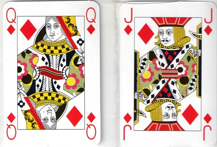 C4 is made in China for Caroline Gardner, who seems to be a fancy goods and gifts designer. The courts are based on CUS7 and have fabric designs added to the clothes, the same one for the courts of one suit. The QD is actually a duplicate of the QH with clothing differences. There is a special joker. The double box was bought at the Royal Horticultural Society's shop at Wisley in 2011.