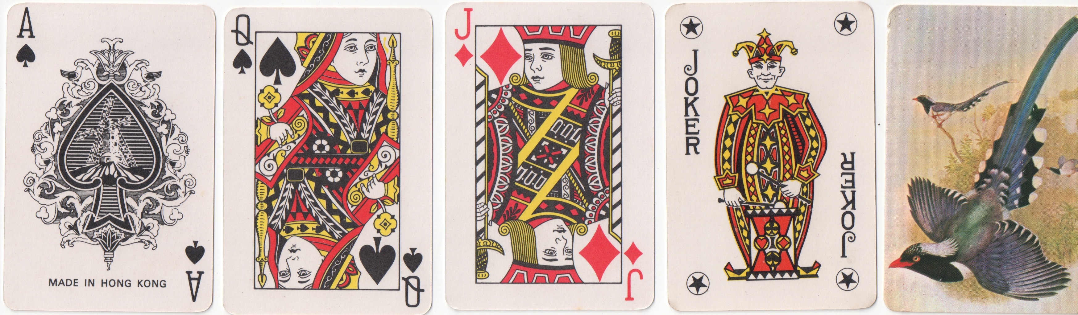 A design from Hong Kong used from the 1970s to the present is a redrawing of CUS3.2 often found with a joker copied from Piatnik's full standing one.